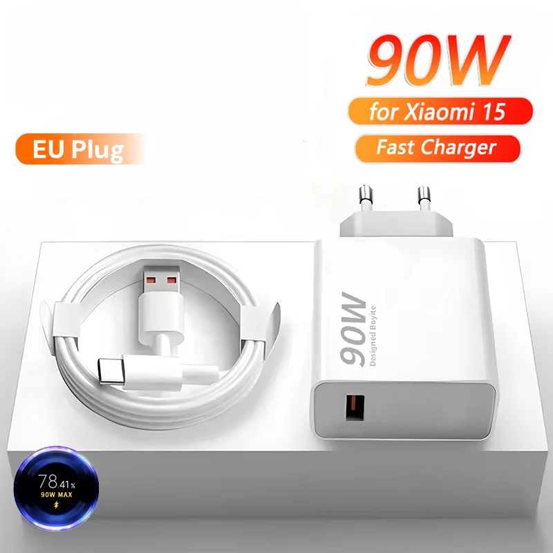 ♡Быстрый просмотрЗарядное устройство 90 Вт, быстрая турбозарядка, настенный адаптер питания европейского стандарта, кабель типа C 6A для Mi 15Ultra 14 13 12 Ultra Poco F7 Pro224.94 RUBRUB 35.00Горячее★★★★★4.3