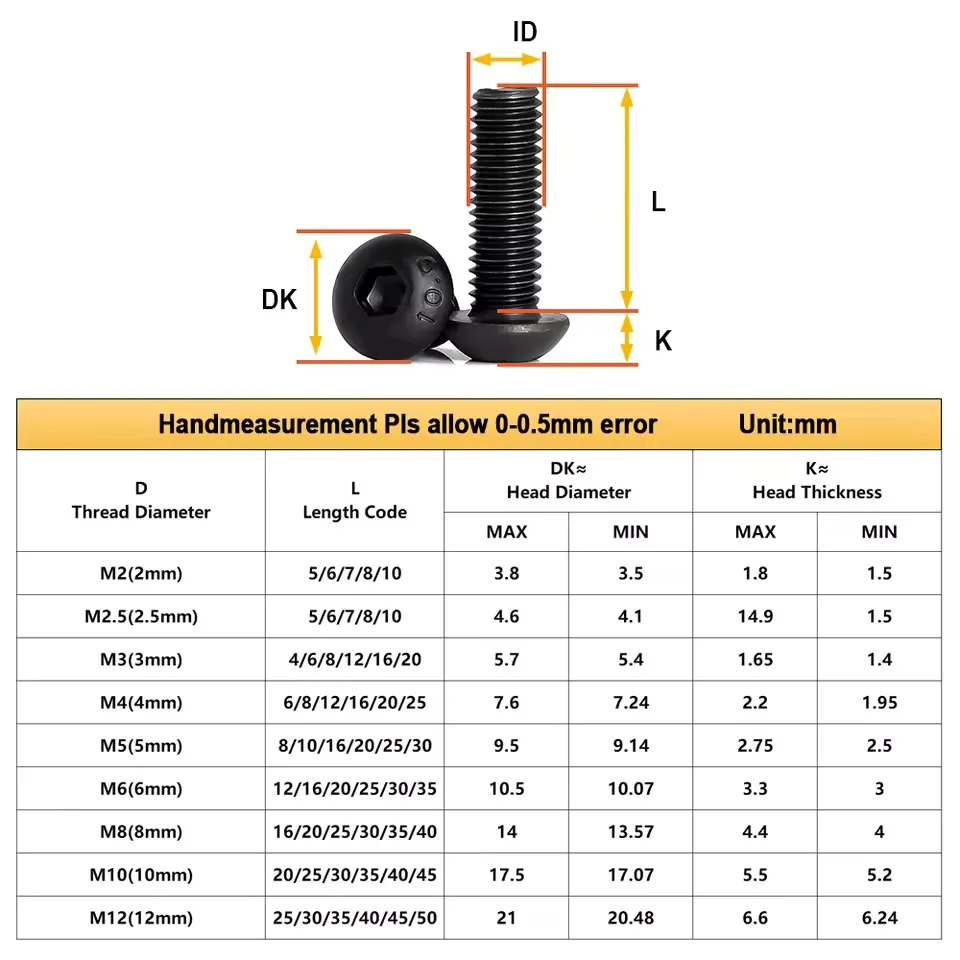 ♡Быстрый просмотрISO7380 Шестигранный винт из нержавеющей стали M2 M2.5 M3 M4 M5 M6 M8 M10 M12 Шестигранный 304 SS Болт с шестигранной головкой и резьбой Металлические винты258.40 RUBГорячее★★★★★★4.9