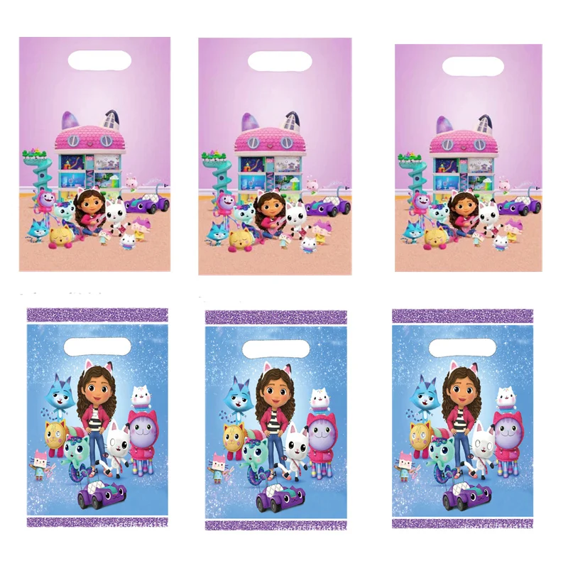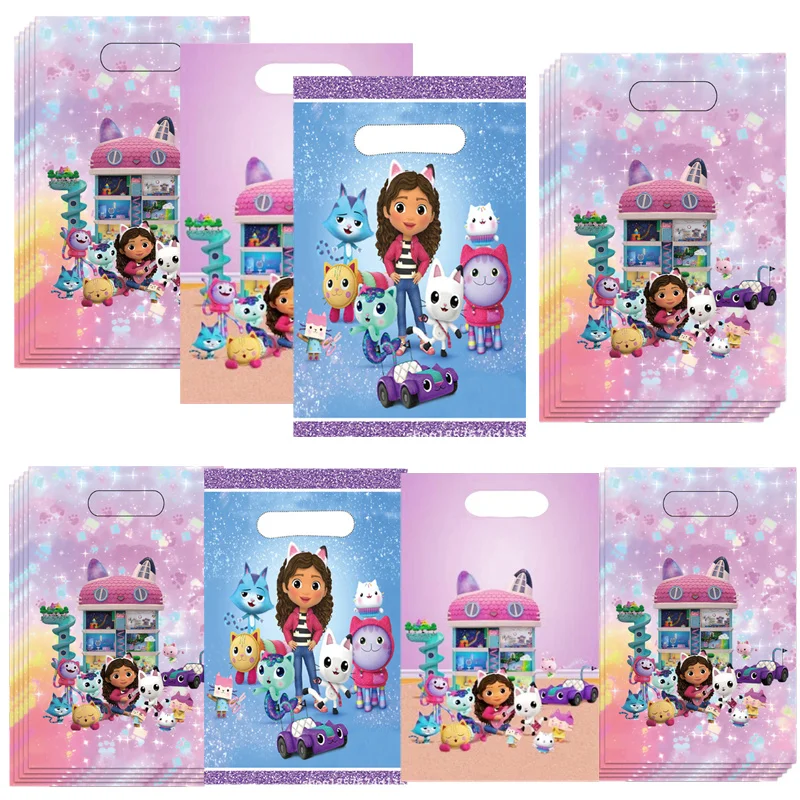 10/50 шт., кукольный домик Габби, тема кошек, пластиковая сумка для конфет, подарочная сумка с ручкой, детские украшения для дня рождения, вечеринки - TopDealBox