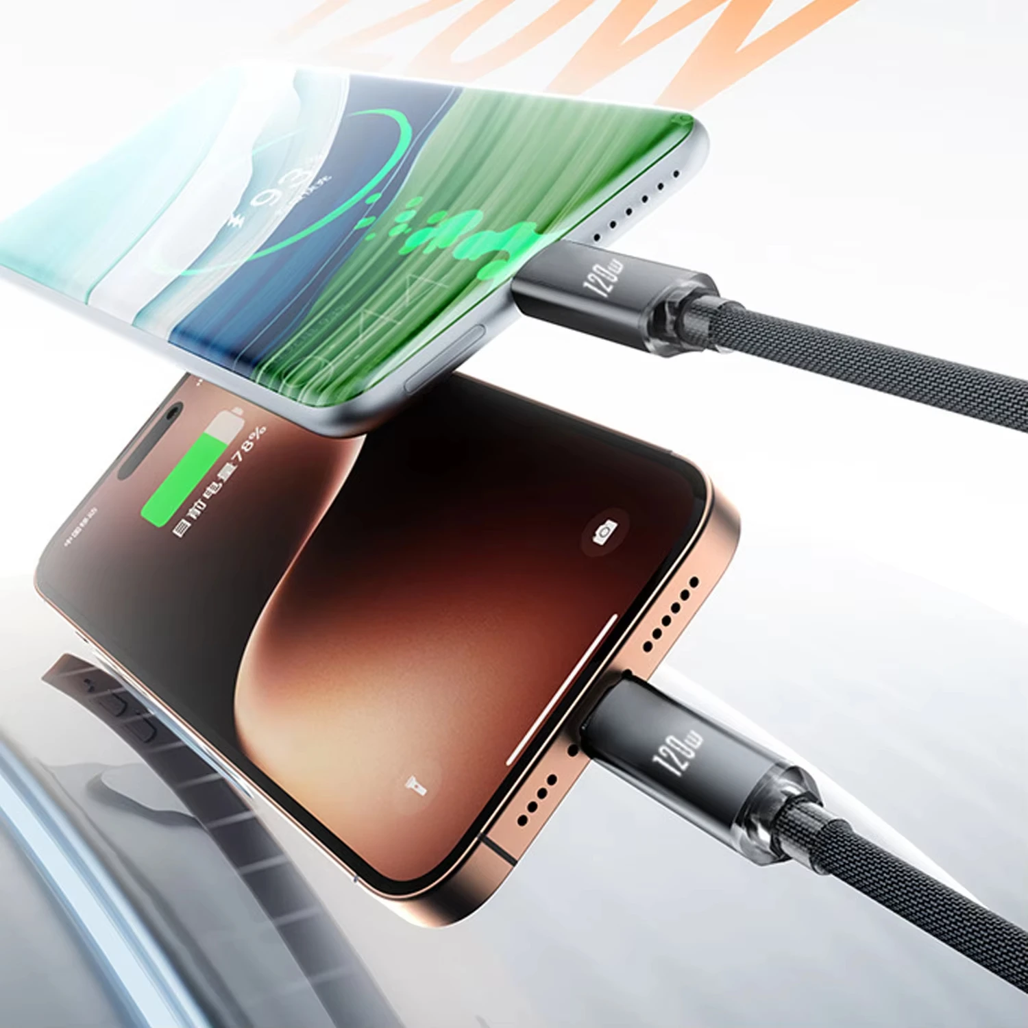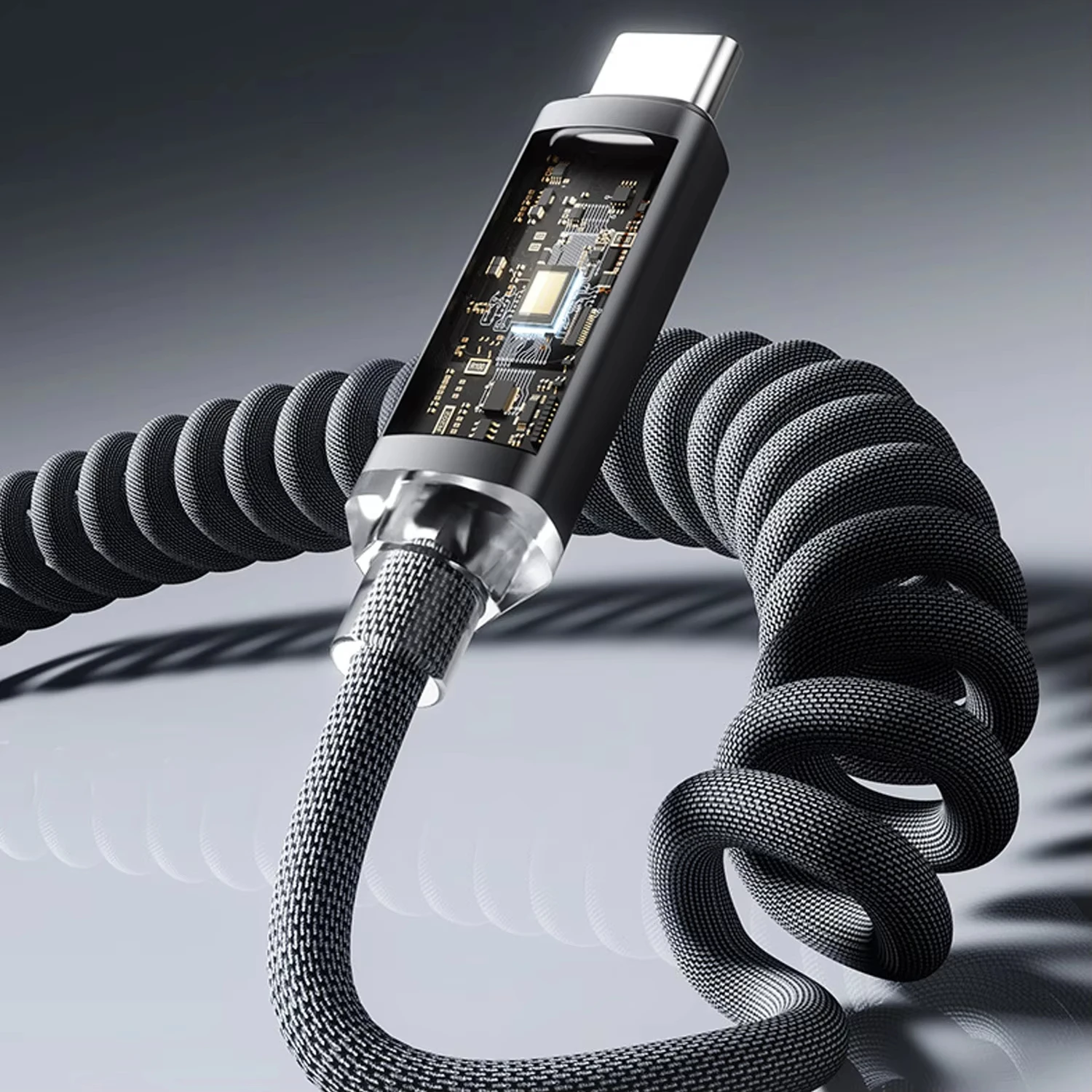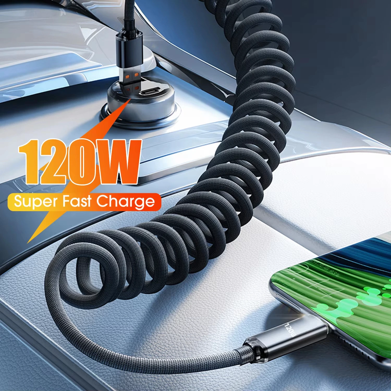 120 Вт USB-C — USB C Пружинный кабель для быстрой зарядки Выдвижное автомобильное зарядное устройство Шнур для передачи данных для телефонов Samsung Xiaomi Type-C iPhone 17/16/15 - TopDealBox