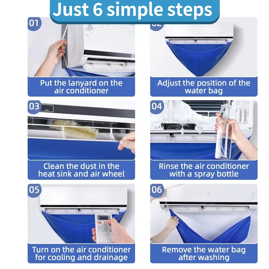 1/2/3/6/8 шт., 90 см, чехол для чистки кондиционера, подвесной мешок для мытья воды переменного тока, многоразовые летние чистящие средства, утолщенные с трубой - TopDealBox