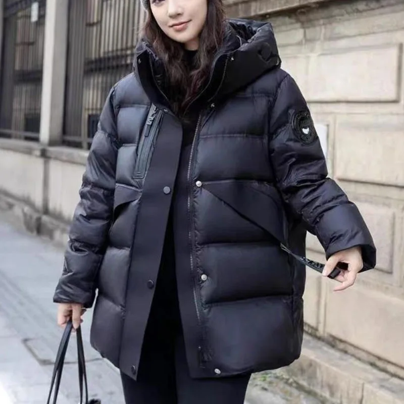 ♡Быстрый просмотр2025 Новый зимний теплый пуховик с капюшоном на толстом белом утином пуху для отдыха, женский пуховик, однотонное пальто Parker, свободный женский пуховик H4394102.26 RUBГорячее★★★★★5.0