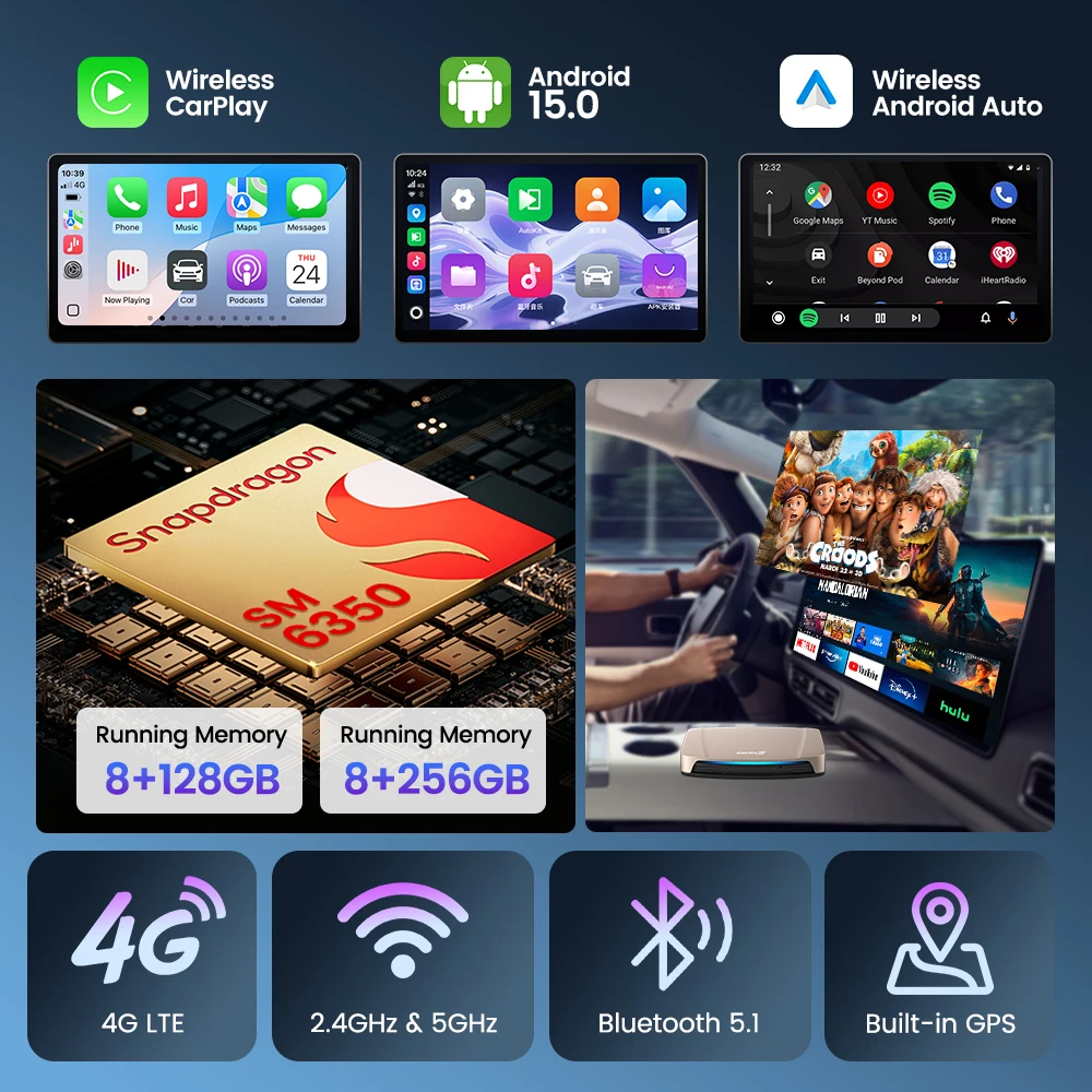 ♡Быстрый просмотрCarlinkit CarPlay Ai TV Box Plus Android13 8 + 128 ГБ QCM 8-ядерный 665 6125 Беспроводной CarPlay Android Auto для Youtube Netflix 4G LTE13711.19 RUBГорячее★★★★★★4.5