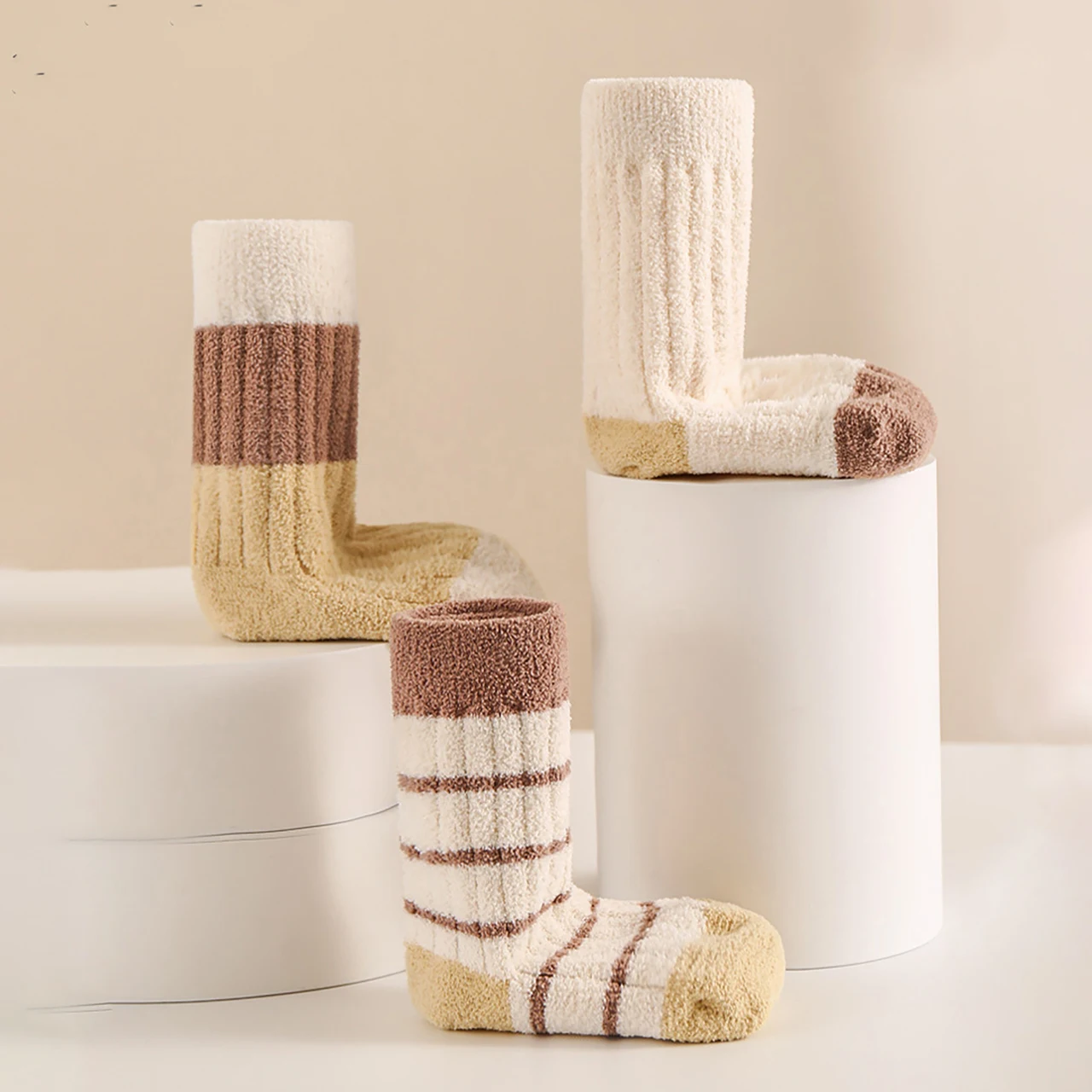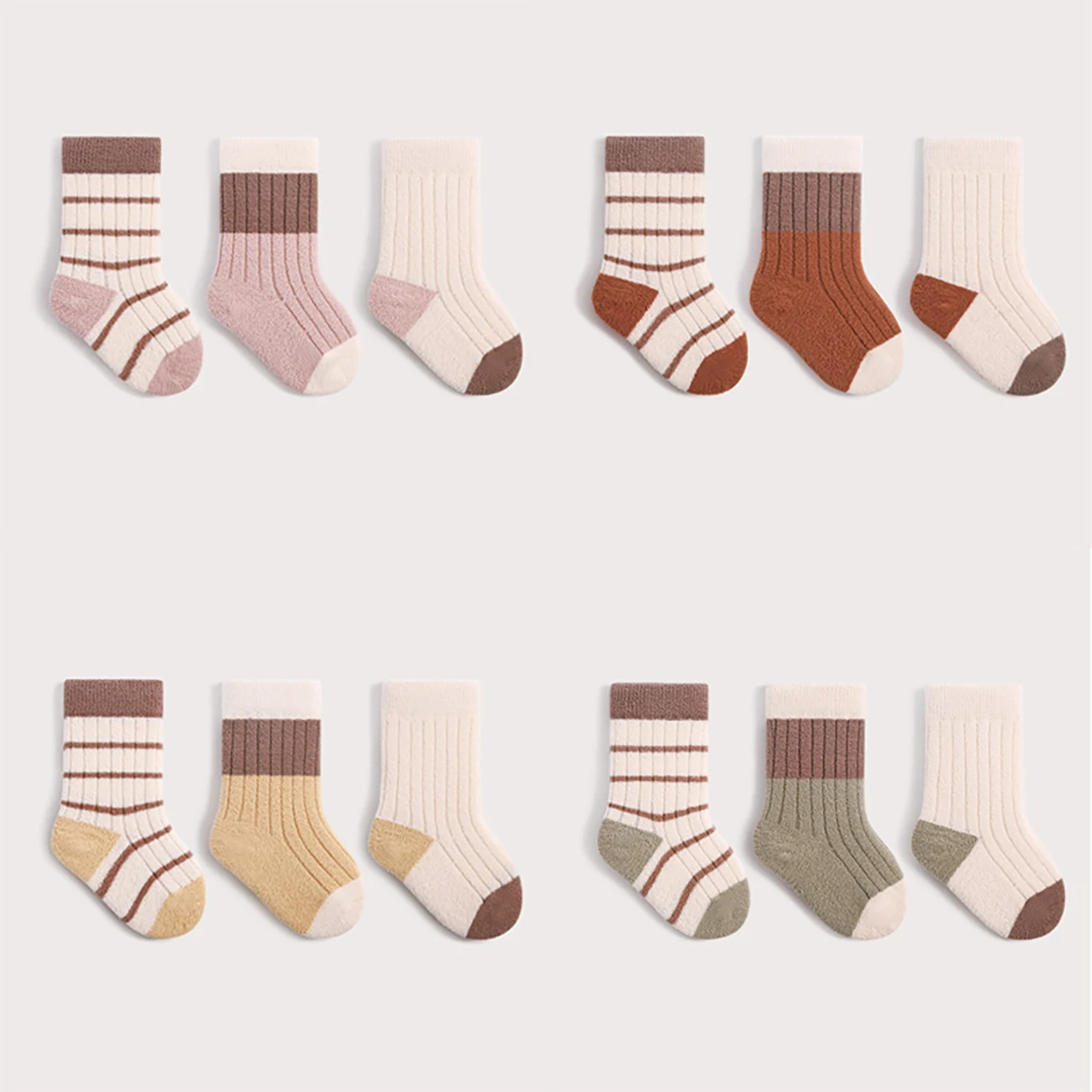 3 пары детских плюшевых носков, толстые теплые детские носки средней длины, зимняя термообувь для мальчиков и девочек, модные хлопковые носки в полоску для малышей - TopDealBox