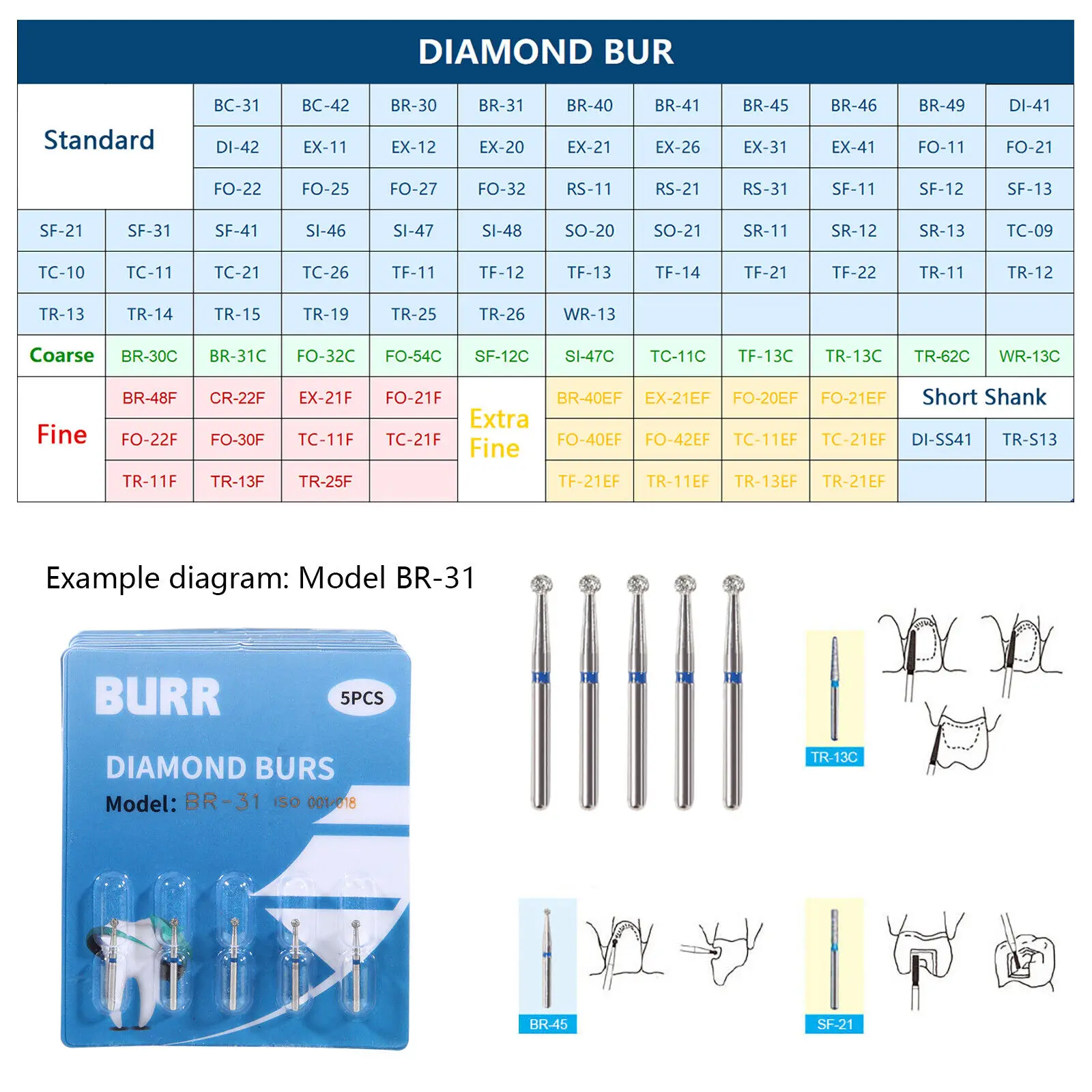 97 типов зубных алмазных буров FG 1,6 мм Бур для высокоскоростного наконечника 5 шт./упаковка - TopDealBox