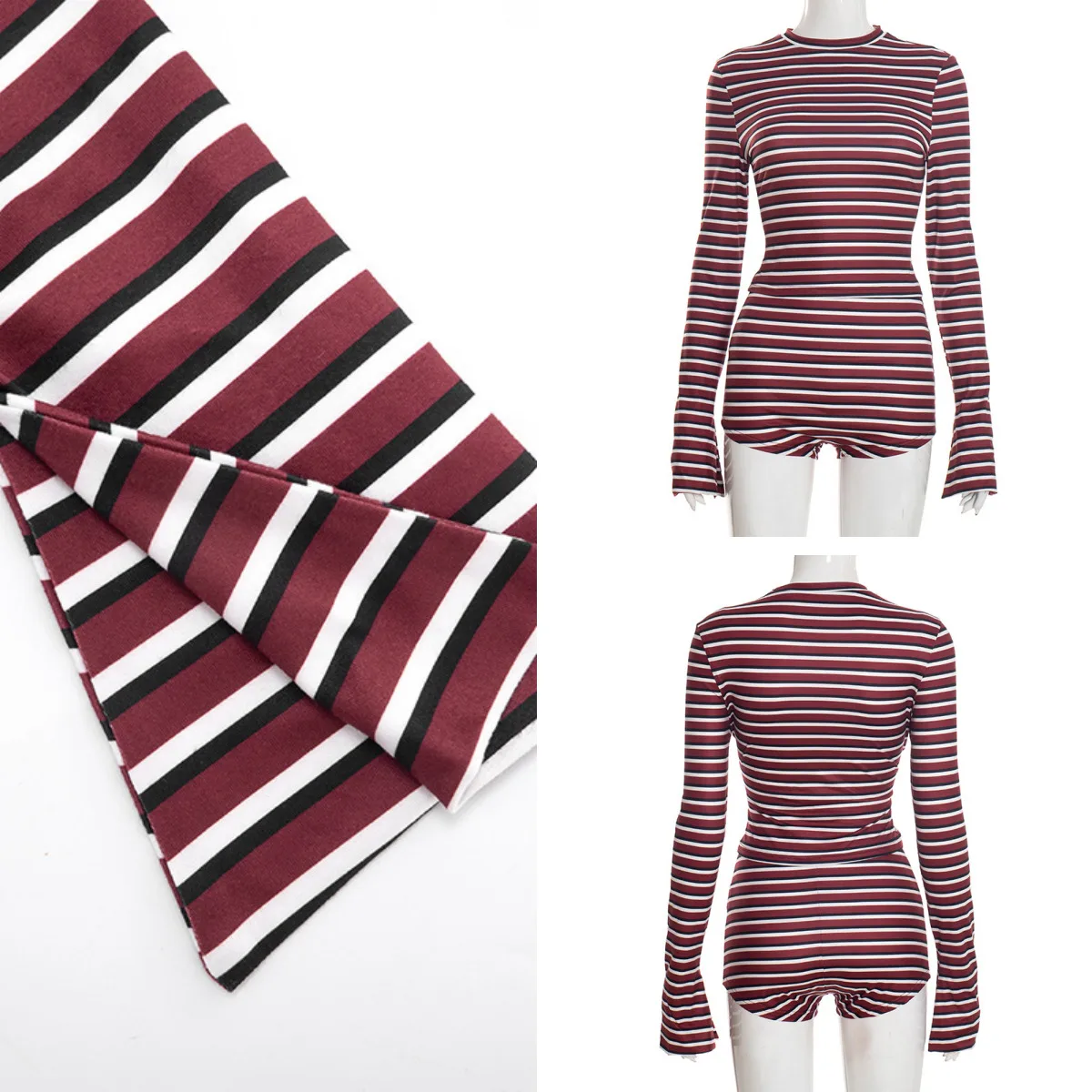♡Быстрый просмотрНовые пижамы с длинными рукавами в корейском стиле 2025 года в черно-белую полоску и шорты с открытыми плечами для женщин, комплект домашней одежды1087.00 RUBГорячее★★★★★★4.6