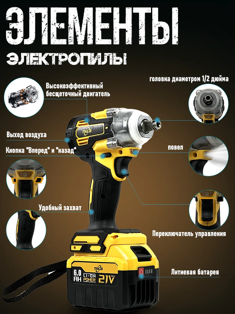 ♡Быстрый просмотрБесщеточный электрический ударный гайковерт TKCB 520n.M 1/2 дюйма. Литий-ионный аккумулятор 18 В, совместимый с Makita, для ремонта автомобилей1616.81 RUBГорячее★★★★★★4.7