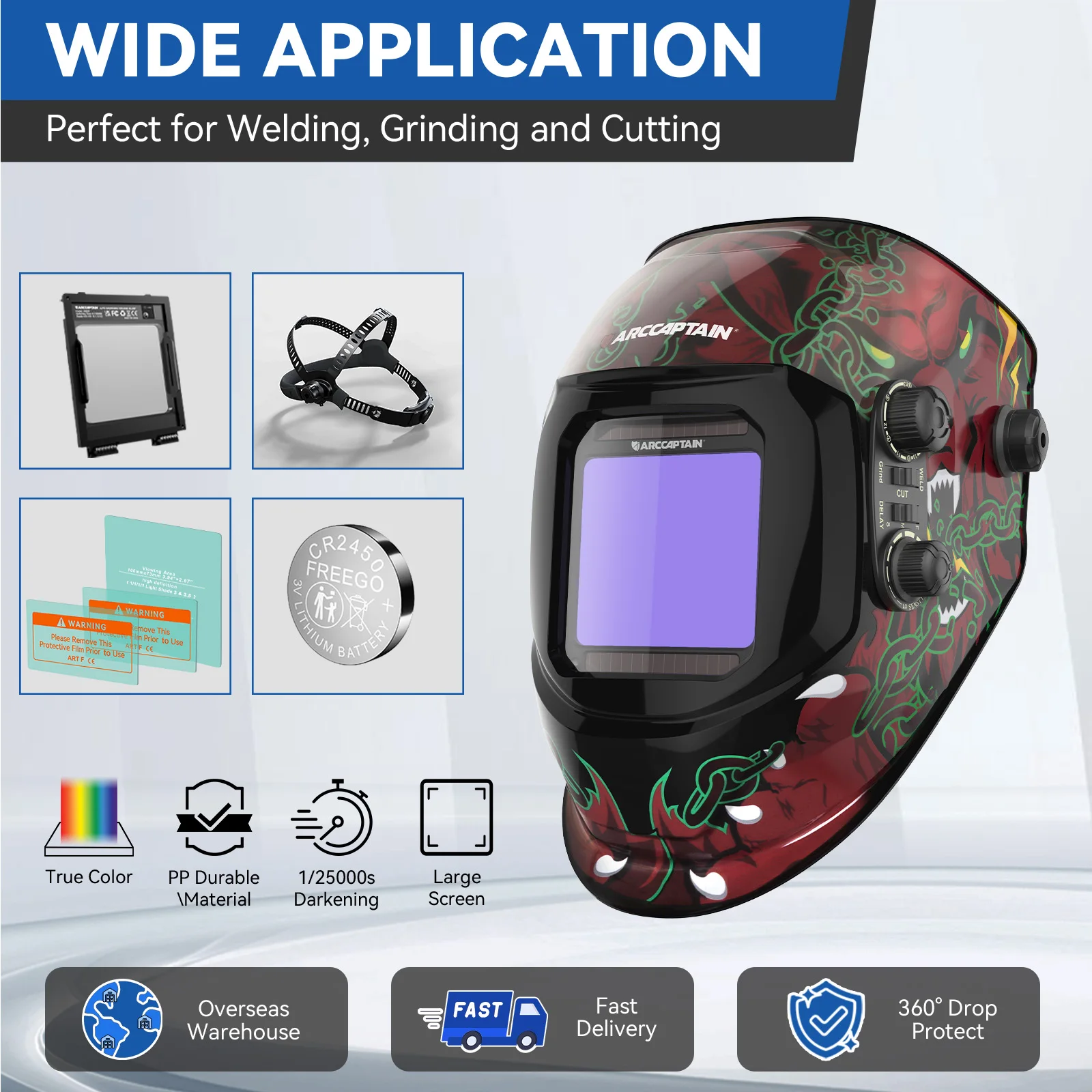 ♡Быстрый просмотрARCCAPTAIN Сварочный шлем с автоматическим затемнением, сварочная маска, 4 датчика, питание от солнечных батарей для TIG MIG ARC, сварочная маска3697.64 RUBГорячее★★★★★★4.8