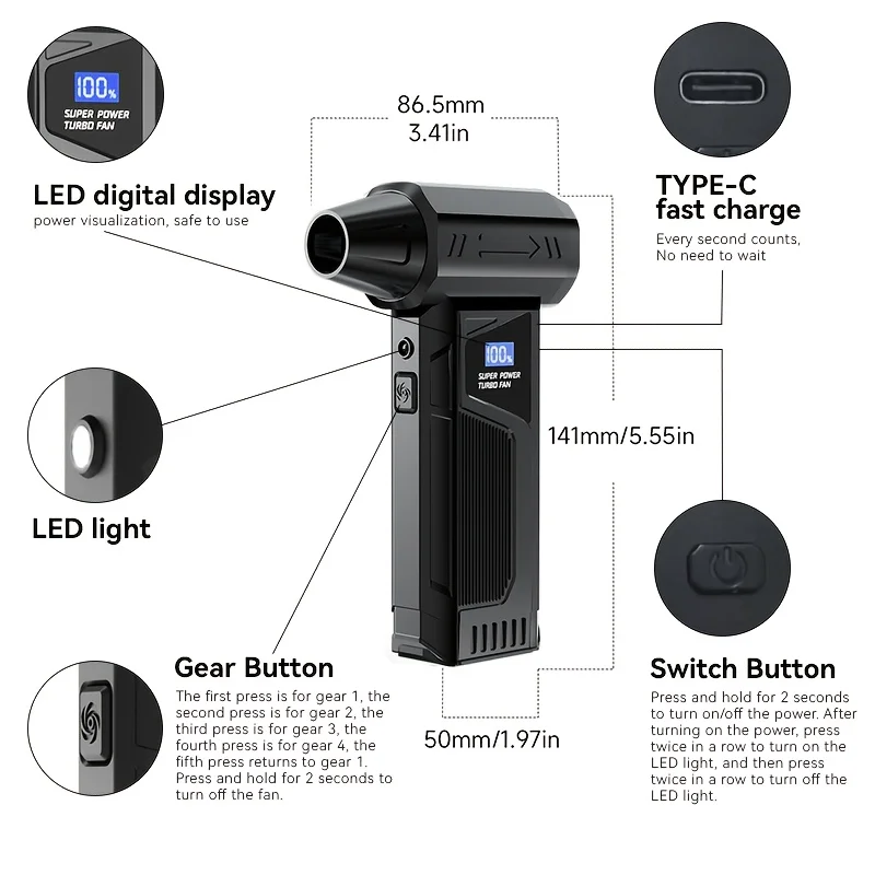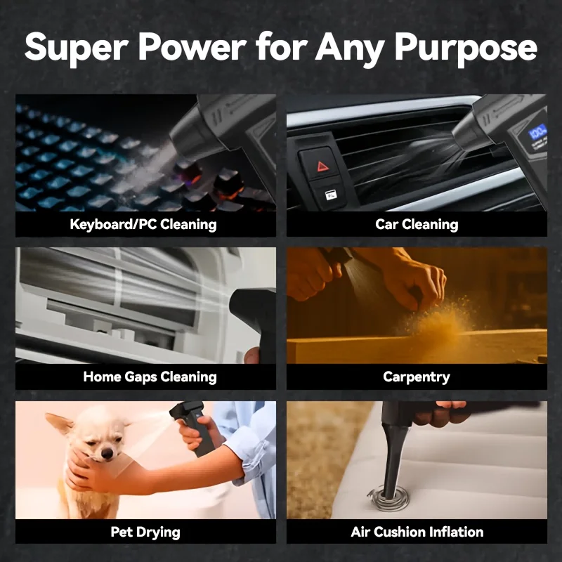 ♡Быстрый просмотрViolent Fan 990000 об/мин Мощный воздуходувка Вакуумный пылеочиститель Type-C Charge Сильный ветер 58 м/с Бесщеточный турбоструйный вентилятор2005.16 RUBГорячее★★★★★★4.7