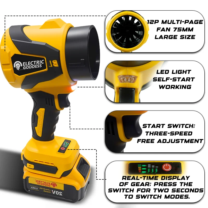 ♡Быстрый просмотрЭлектрическая богиня, беспроводная воздуходувка, бесщеточный ручной листовой сверхсильный струйный турбовентилятор, электроинструмент для Dewalt, 20 В, аккумуляторный штифт3119.84 RUBГорячее★★★★★★4.6