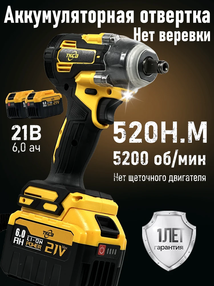 ♡Быстрый просмотрБезщітковий електричний ударний гайковерт із крутним моментом TKCB-520 N.M 1/2 дюйма з літій-іонним акумулятором 20000 мАг для акумулятора Makita 18 В1808.78 RUBГорячее★★★★★★4.7