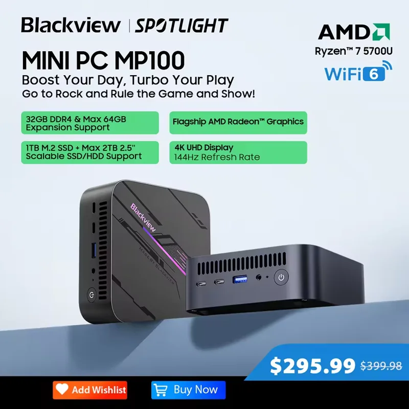 ♡Быстрый просмотрBlackview MP100 НОВЫЙ мини-ПК AMD R7 5700U/5825U Windows 11 8-ядерный 16-поточный 16 ГБ DDR4 512 ГБ/1 ТБ SSD WiFi 6 Мини-компьютерный ПК29724.87 RUBГорячее★★★★★★4.9