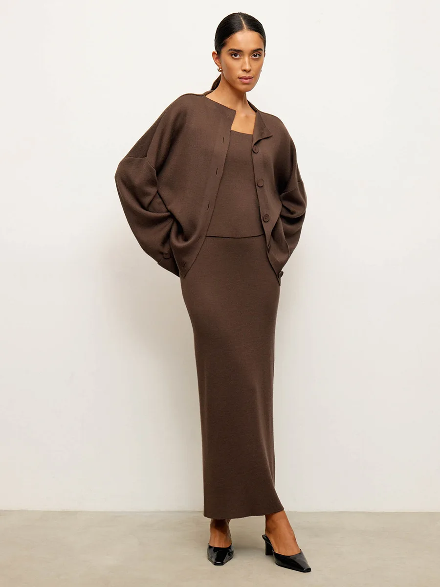♡Быстрый просмотрBornladies женский осенний вязаный кардиган без рукавов, комплект сплошного цвета, модное элегантное модное платье макси длины, комплект из 2 предметов2009.94 RUBГорячее★★★★★3.5