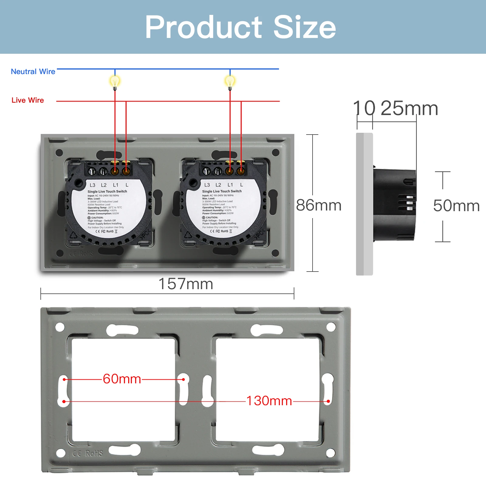 ♡Быстрый просмотрBSEED Wi-Fi 1/2/3Gang Smart Touch Switches 1/2/3Way Настенные выключатели света Tuya Smart Life App Control Plus Розетки Стандарт ЕС1026.91 RUBГорячее★★★★★★4.8