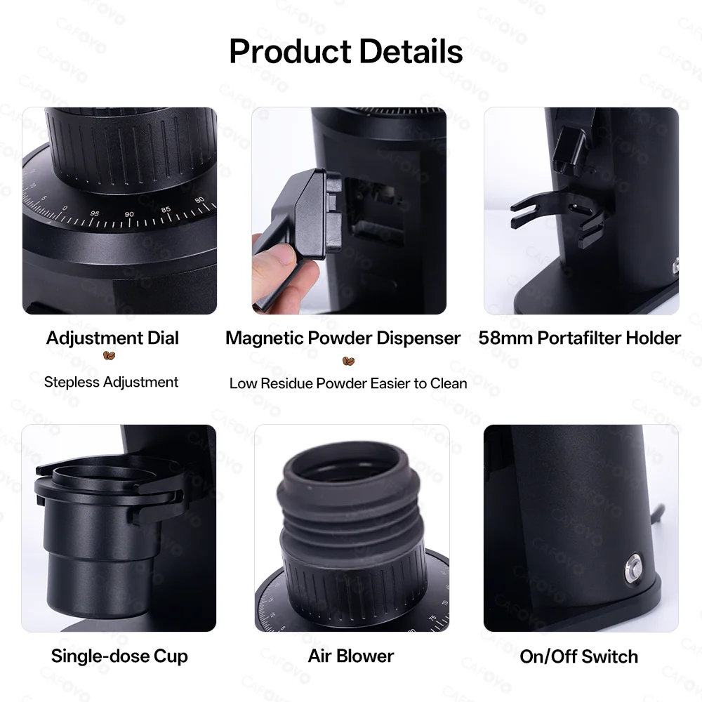 ♡Быстрый просмотрCAFOVO 03 электрическая кофемолка шестиядерная 38 мм заусенцы бытовая кофемолка для кофе в зернах кофемолка для фильтра эспрессо VS315687.80 RUBГорячее★★★★★5.0