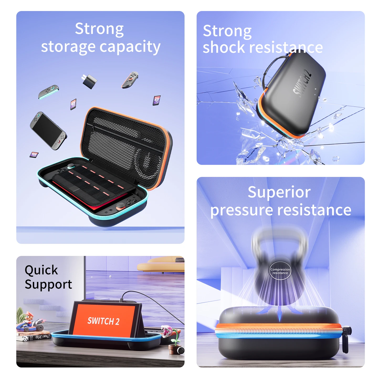 Чехол для переноски модели Nintendo Switch 2, портативный жесткий чехол для переноски, дорожная игровая сумка для Nintendo Switch 2, сине-оранжевый - TopDealBox