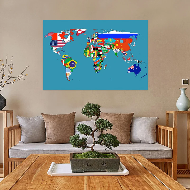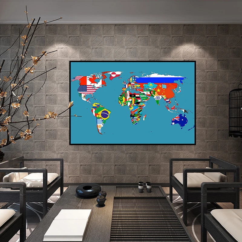 Обучающий настенный декор: Карта мира без рамки с флагами стран, декоративная карта, товары для путешествий/учебы - TopDealBox