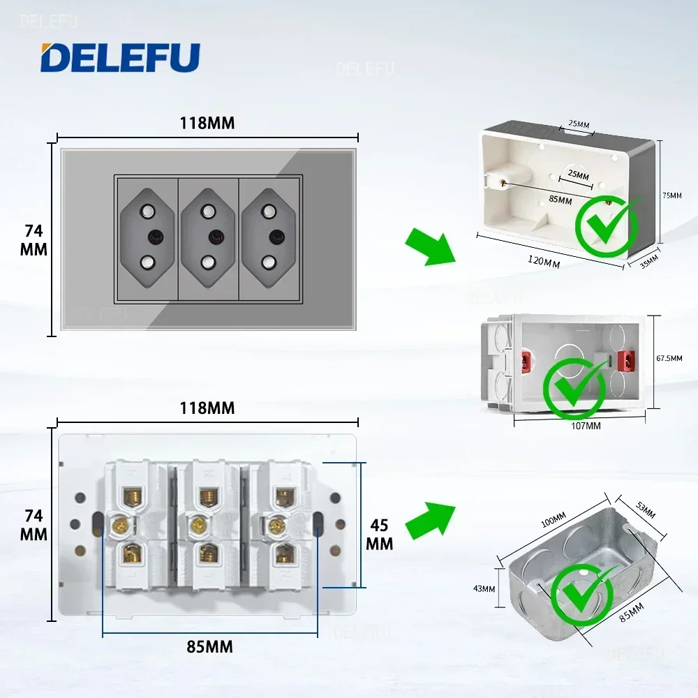 ♡Быстрый просмотрDELEFU 4*2 черное закаленное стекло, бразильская стандартная розетка, двойной USB-разъем типа C, настенная розетка, выключатель света, Швейцария, 10A, 20A633.88 RUBГорячее★★★★★★4.9