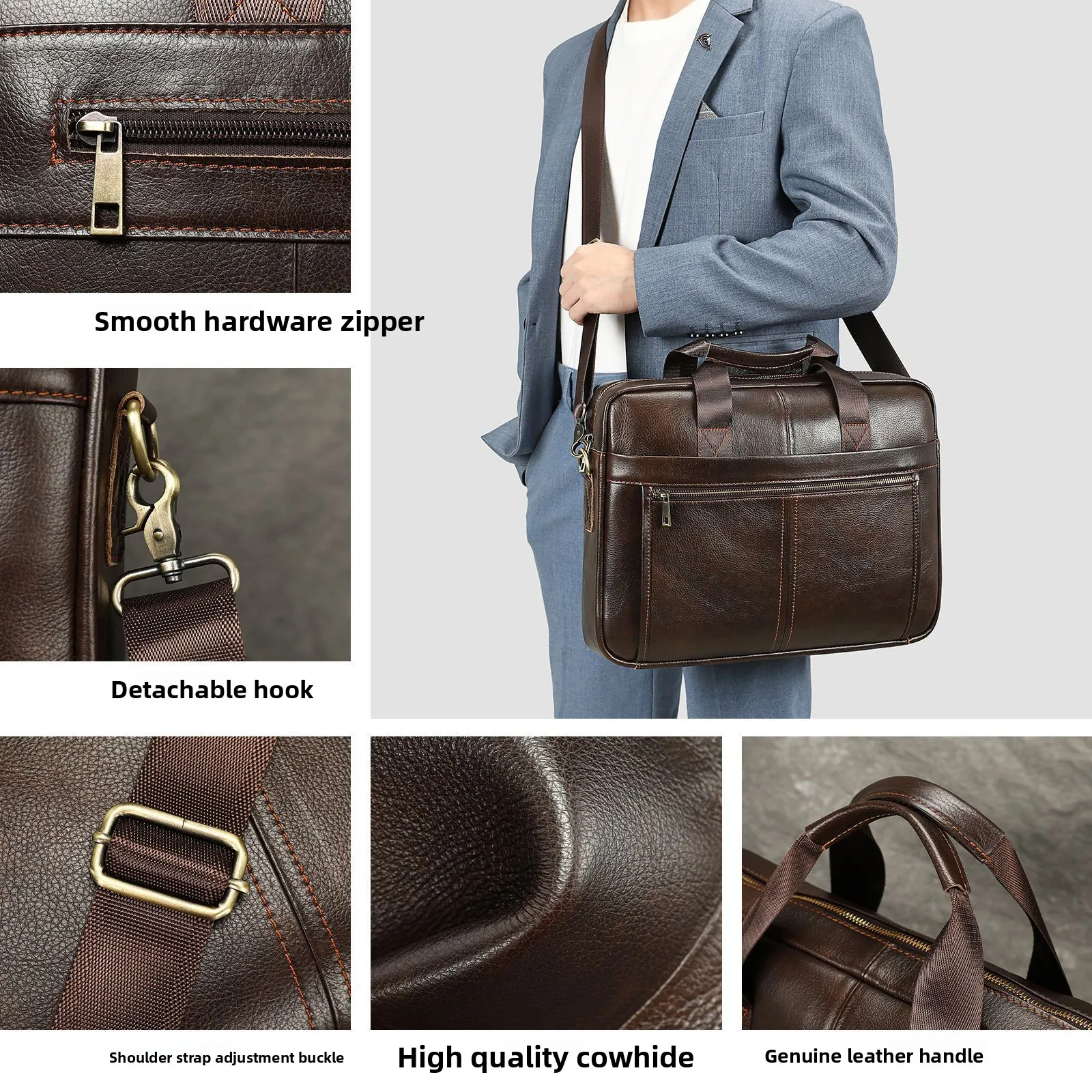 ♡Быстрый просмотрМужской портфель из воловьей кожи, кожаная мужская сумка, деловая сумка, 16-дюймовая ручная сумка для компьютера на плечо2813.92 RUBГорячее