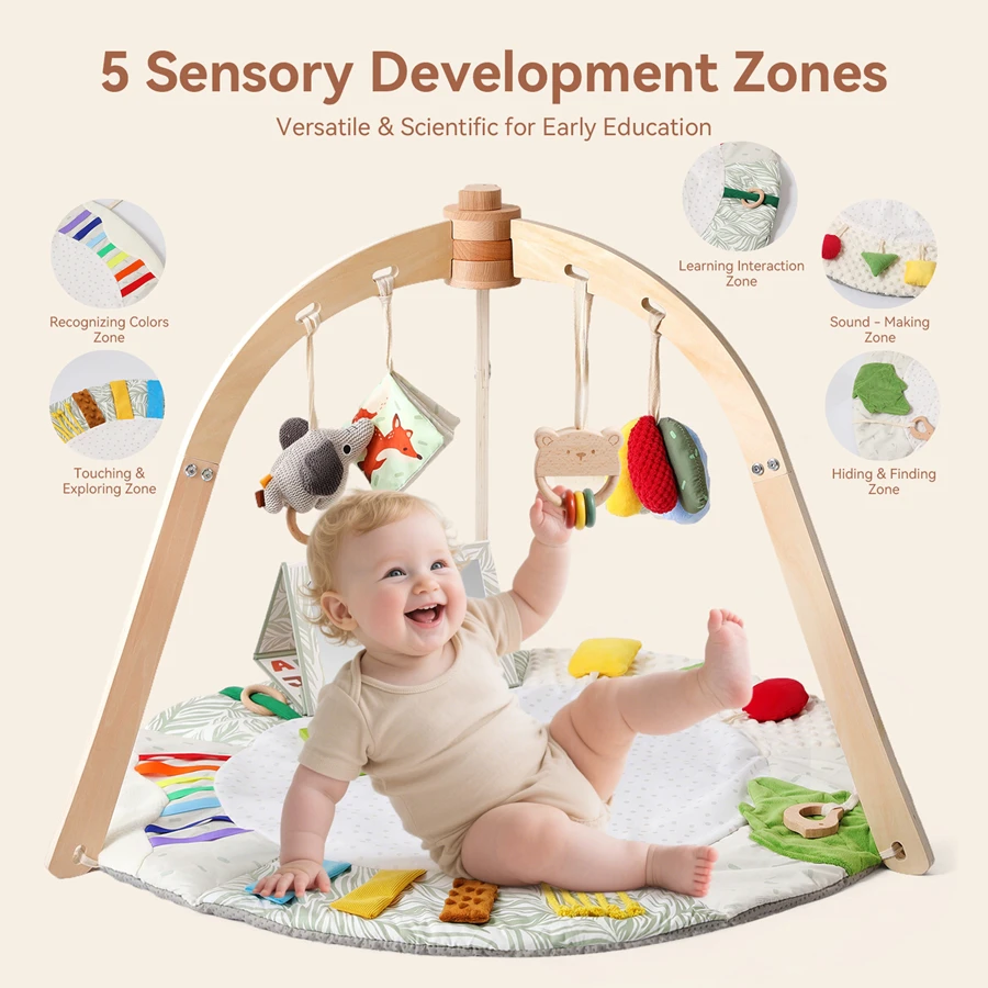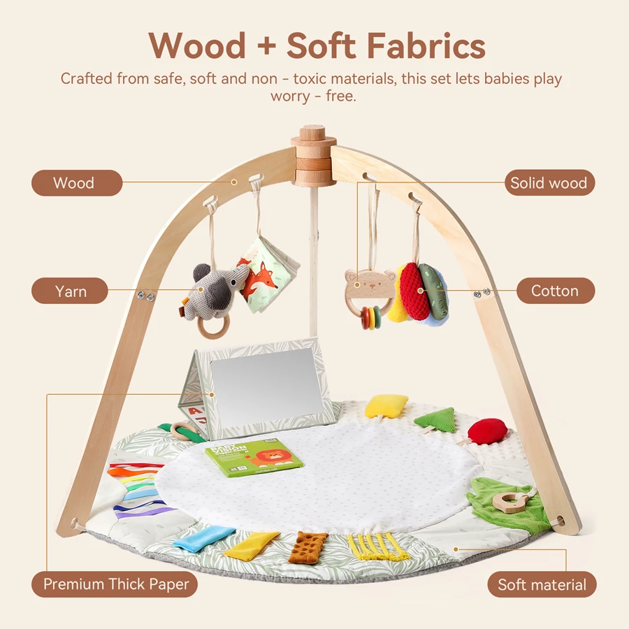 Деревянная детская спортивная рамка Деревянная арка для занятий малышей Игровой коврик для тренажерного зала Подвесная погремушка Набор игрушек для детских игр в тренажерном зале Душ Подарочные игрушки - TopDealBox