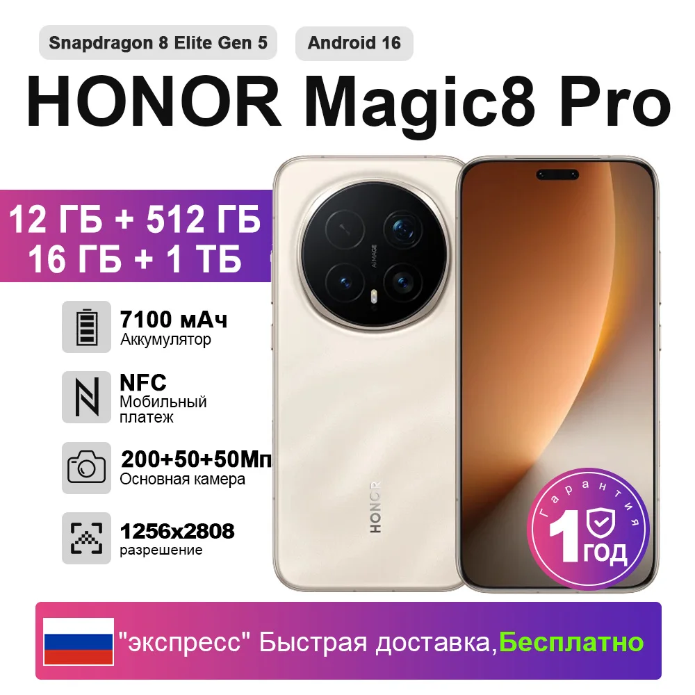 【Экспресс-доставка】Смартфон HONOR Magic8 Pro 5G AI с OLED-дисплеем 6,71 дюйма, процессором Snapdragon 8 Elite Gen 5, аккумулятором 7100 мАч, быстрой зарядкой 100 Вт и поддержкой eSIM - TopDealBox