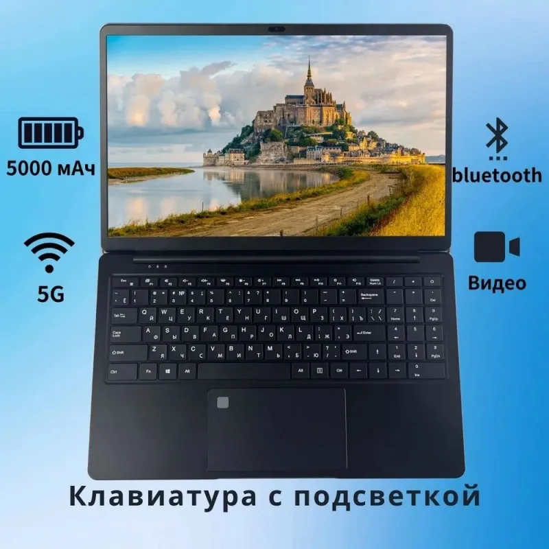 ♡Быстрый просмотр15,6 "Ноутбук 1080P Игровой ноутбук Intel Celeron N5095 4 ядра 12G Оперативная память 1 ТБ SSD Полноразмерная русская лазерная клавиатура с подсветкой отпечатков пальцев WiFi BT4.037133.14 RUBГорячее