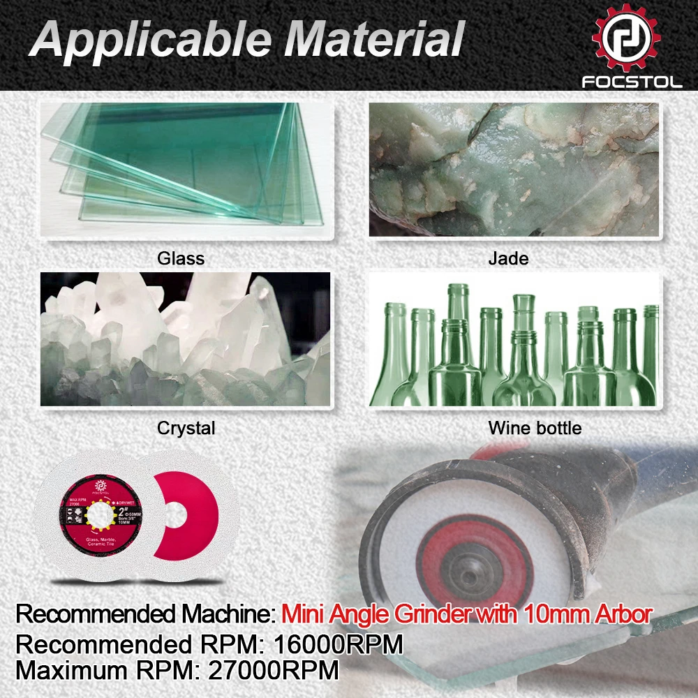 ♡Быстрый просмотрFOCSTOL Режущий диск для стекла, нефрита, хрустальной плитки, мрамора, пильное полотно, паяное стекло, гравировка, круглый хвостовик, мини-пильное полотно235.73 RUBГорячее★★★★★★4.9