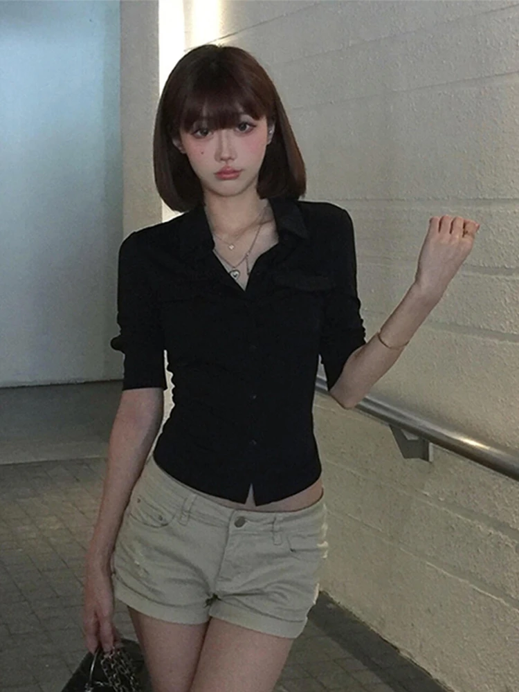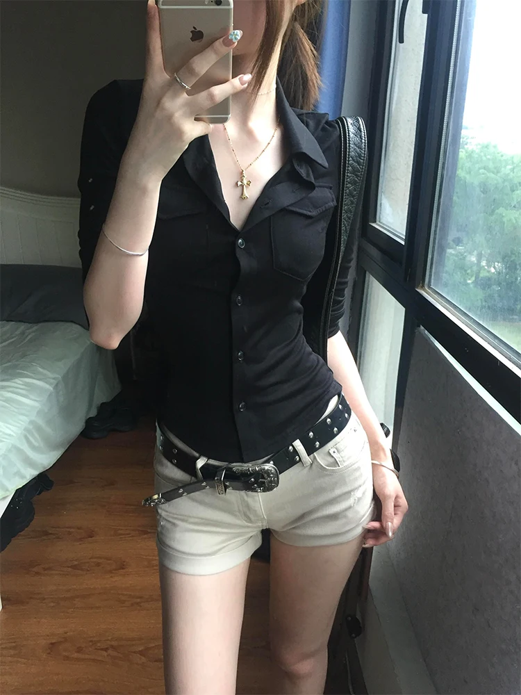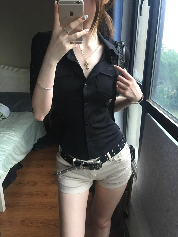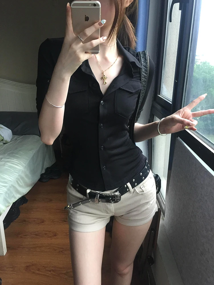 ♡Быстрый просмотрGenayooa американская ретро лоскутная рубашка женские повседневные рубашки с коротким рукавом Y2k винтажные поддельные топы из двух предметов японские футболки 2000-х годов1156.95 RUBГорячее★★★★★★4.7