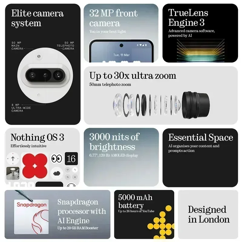 Глобальная версия Nothing Phone (3a) 6,77 дюйма Гибкий AMOLED Snapdragon 7s Gen 3 5G 5000 мАч 50 Вт Зарядка 12 ГБ + 256 ГБ - TopDealBox
