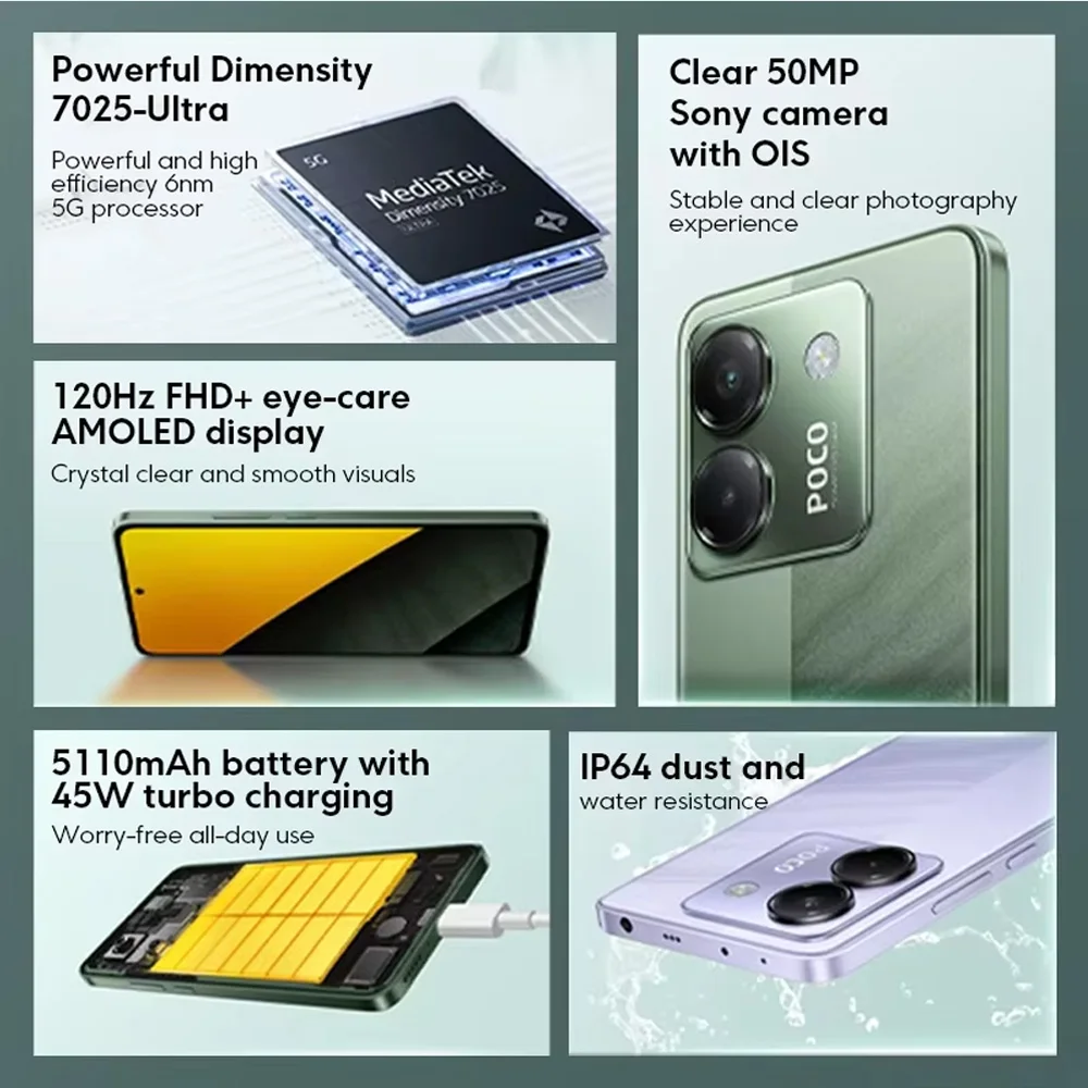 Глобальная версия смартфона POCO M7 Pro NFC, размер 7025-Ultra, 120 Гц, 6,67 дюйма, AMOLED, 50 МП, камера с турбозарядкой OIS, 45 Вт, 5110 мАч - TopDealBox