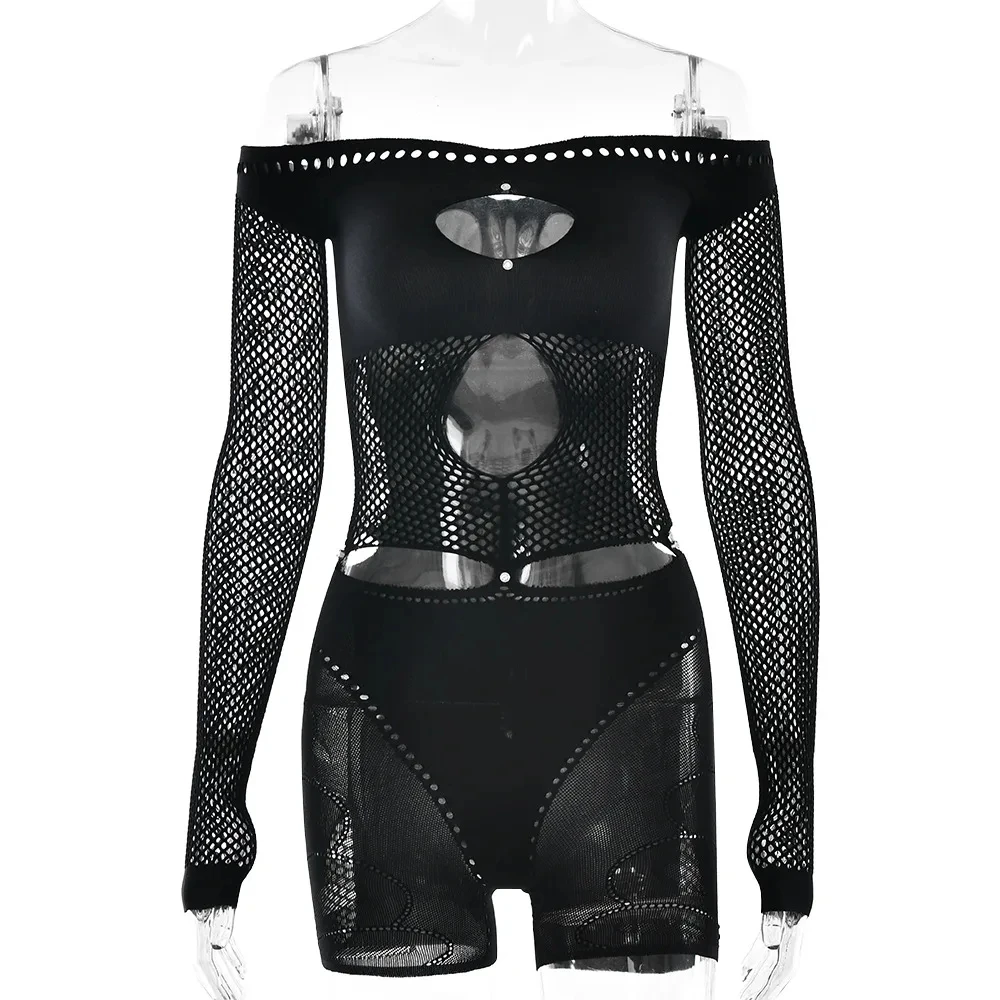 HLJ сексуальные открытые комбинезоны женские с открытыми плечами прозрачные облегающие комбинезоны с длинными рукавами комбинезоны женские вечерние клубная одежда новинка - TopDealBox