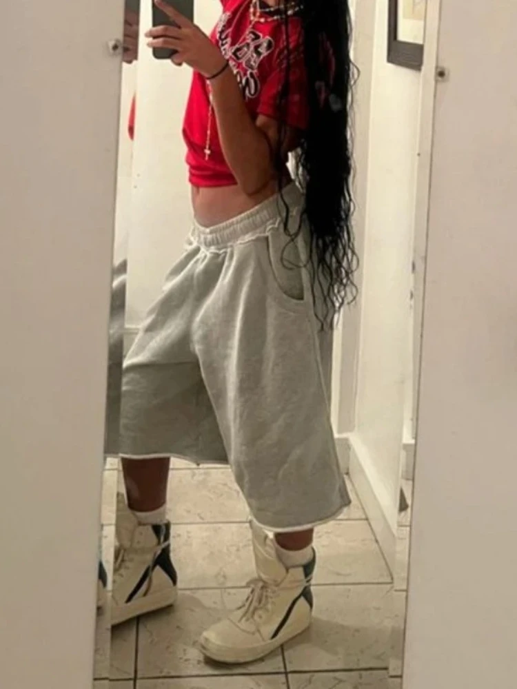 ♡Быстрый просмотрHOUZHOU серые рваные женские брюки Y2k для бега с широкими штанинами в американском стиле ретро в стиле хип-хоп, мешковатые повседневные уличные брюки большого размера, летняя одежда2132.23 RUBГорячее★★★★★4.4