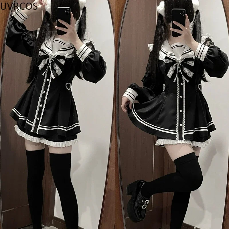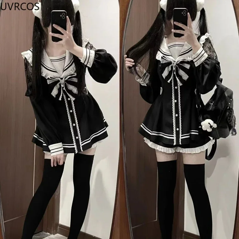 Японский стиль, готический Y2k, Лолита, платье с бантом, шорты, комплект, женская винтажная милая рубашка на пуговицах с длинными рукавами, вечерние платья, тонкое платье 2025 - TopDealBox