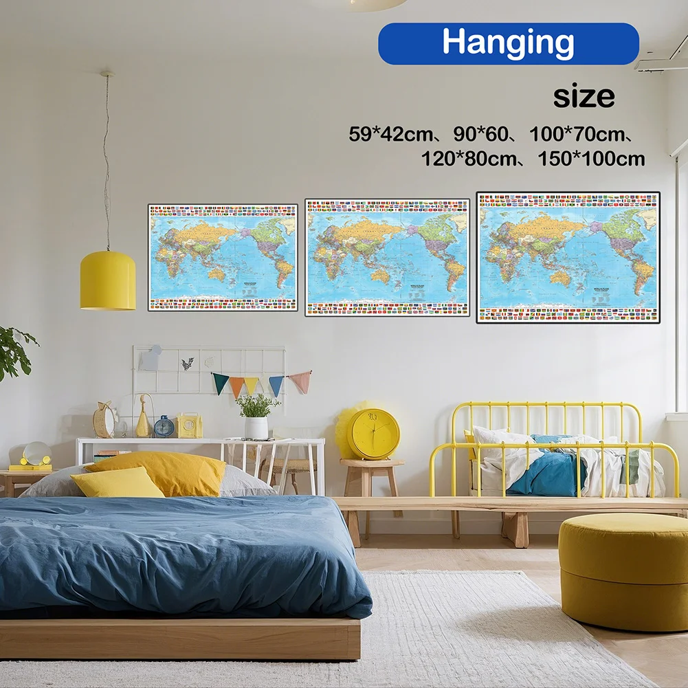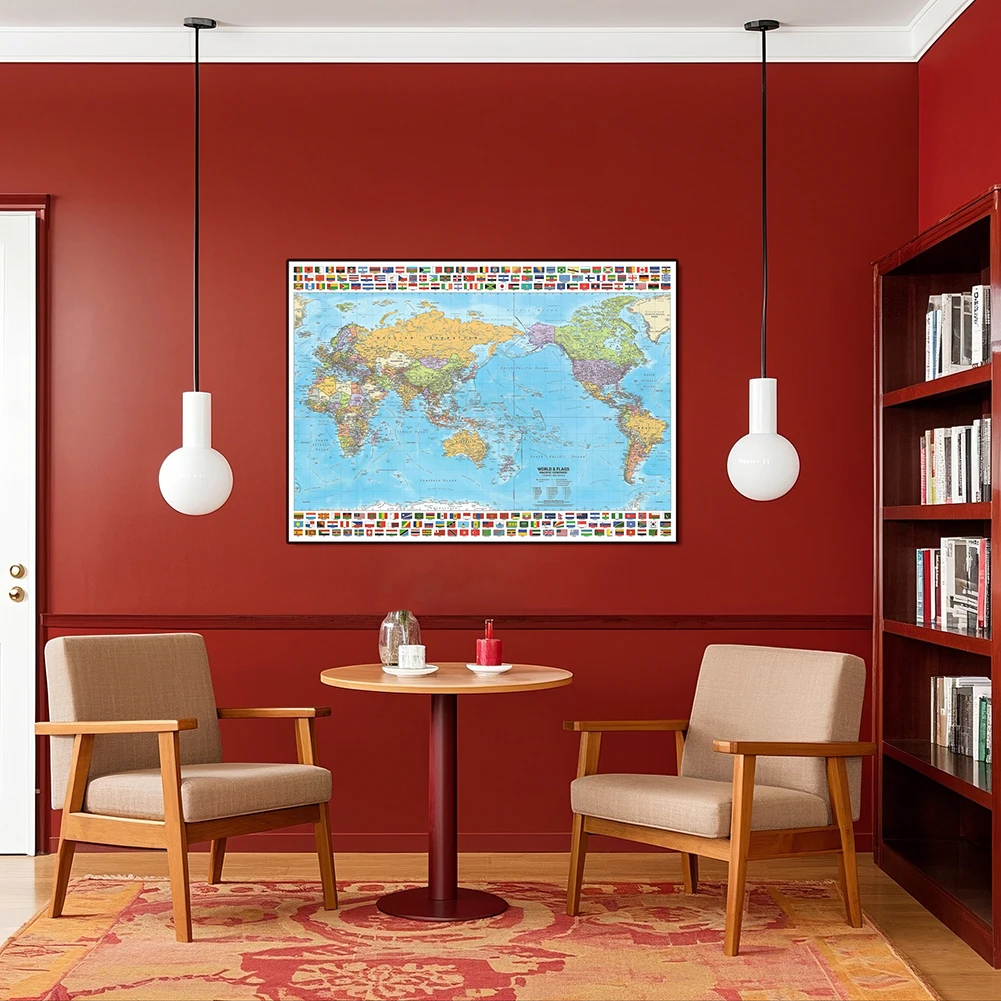 Карта мира с политическим разграфлением и флагами 2012 года, декор для стен, украшение для дома, географические инструменты, инструменты для туризма/образования - TopDealBox