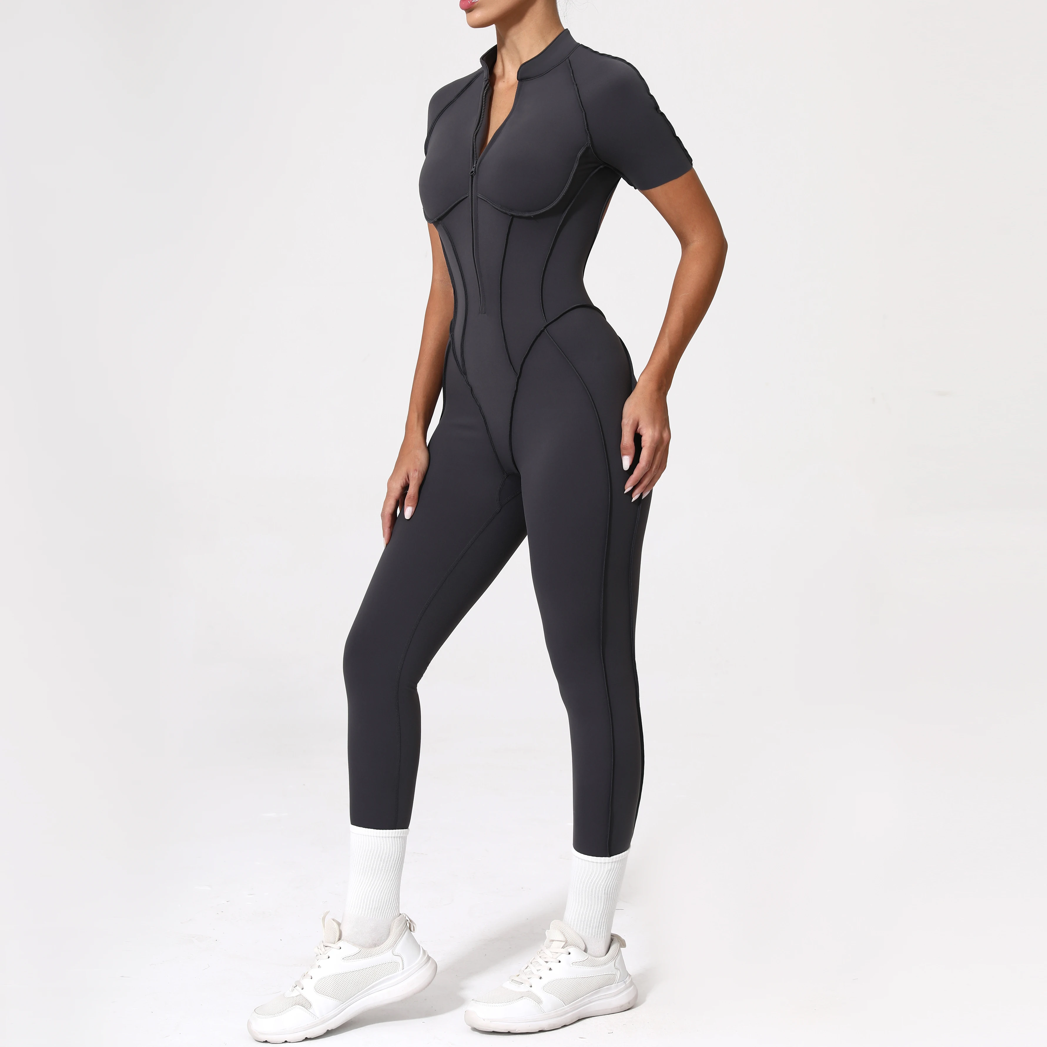 ♡Быстрый просмотрЖенский цельный костюм на молнии с коротким рукавом для тренажерного зала, одежда для тренировок с эффектом пуш-ап, короткое боди для фитнеса, спортивная одежда, комбинезоны1603.24 RUBГорячее★★★★★★4.7