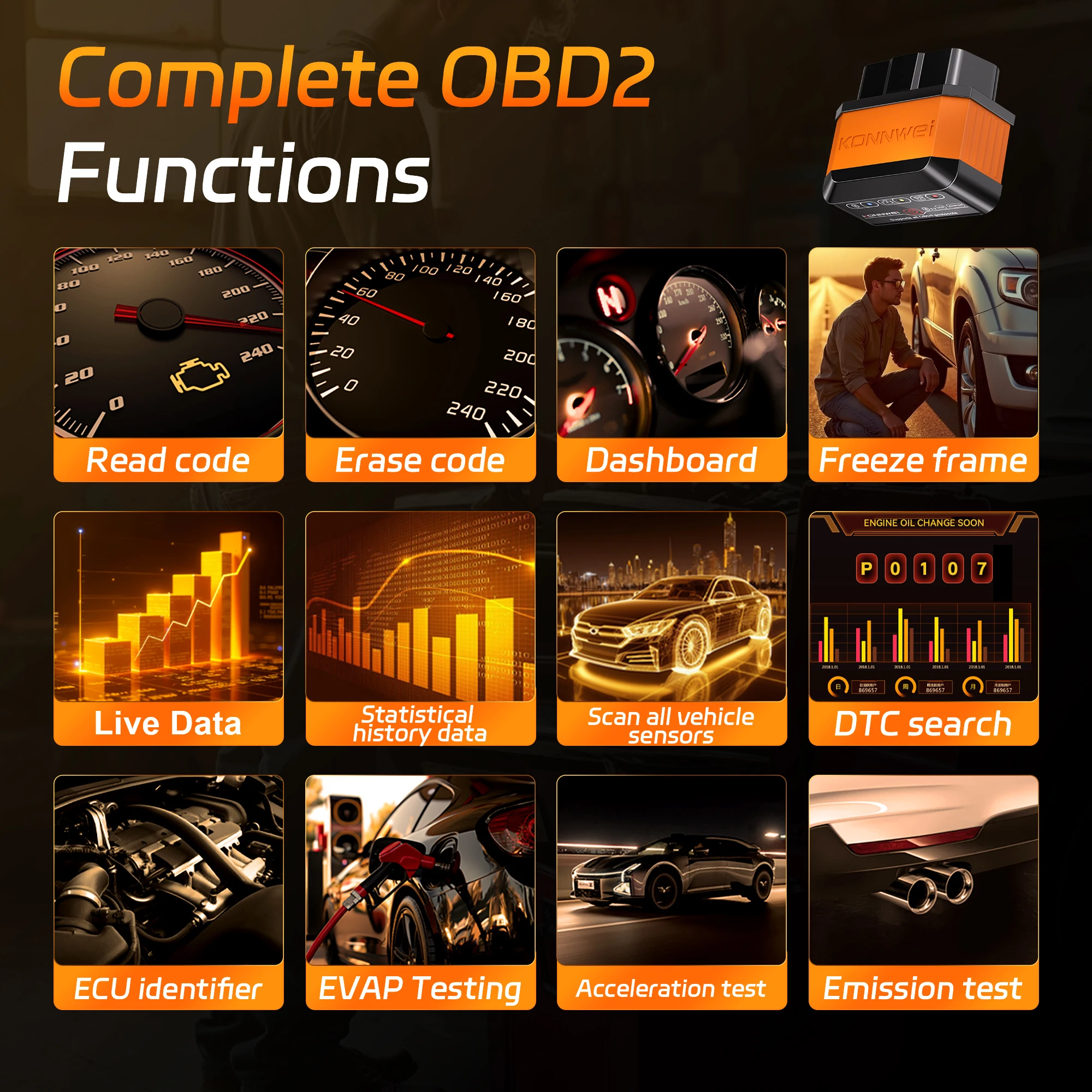 ♡Быстрый просмотрKONNWEI KW906 ELM327 V1.5 OBD2 сканеры Bluetooth 5,0 для Android/IOS ELM 327 OBD 2 автомобильный диагностический инструмент считыватель кодов Pic18F25K801013.91 RUBГорячее★★★★★★4.6