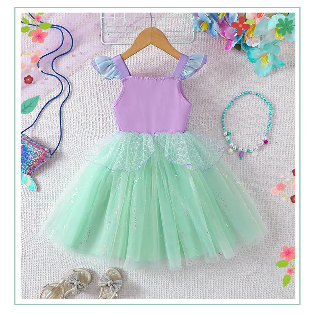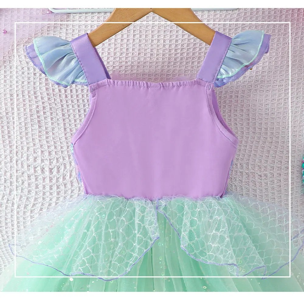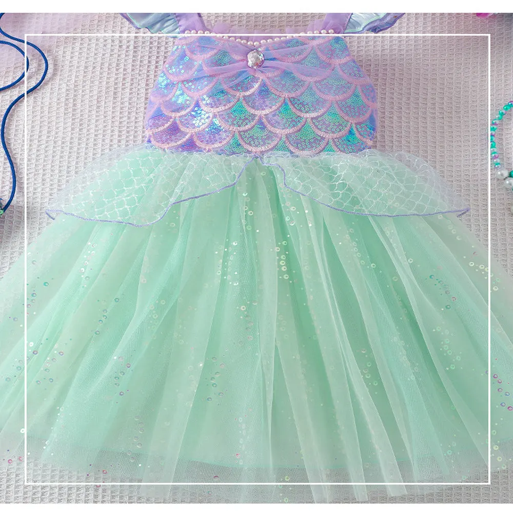 Костюм для выступлений с блестками, платья принцессы для девочек, сетчатая юбка на бретельках, платье для именинницы, праздничная одежда на тему русалки для девочек - TopDealBox