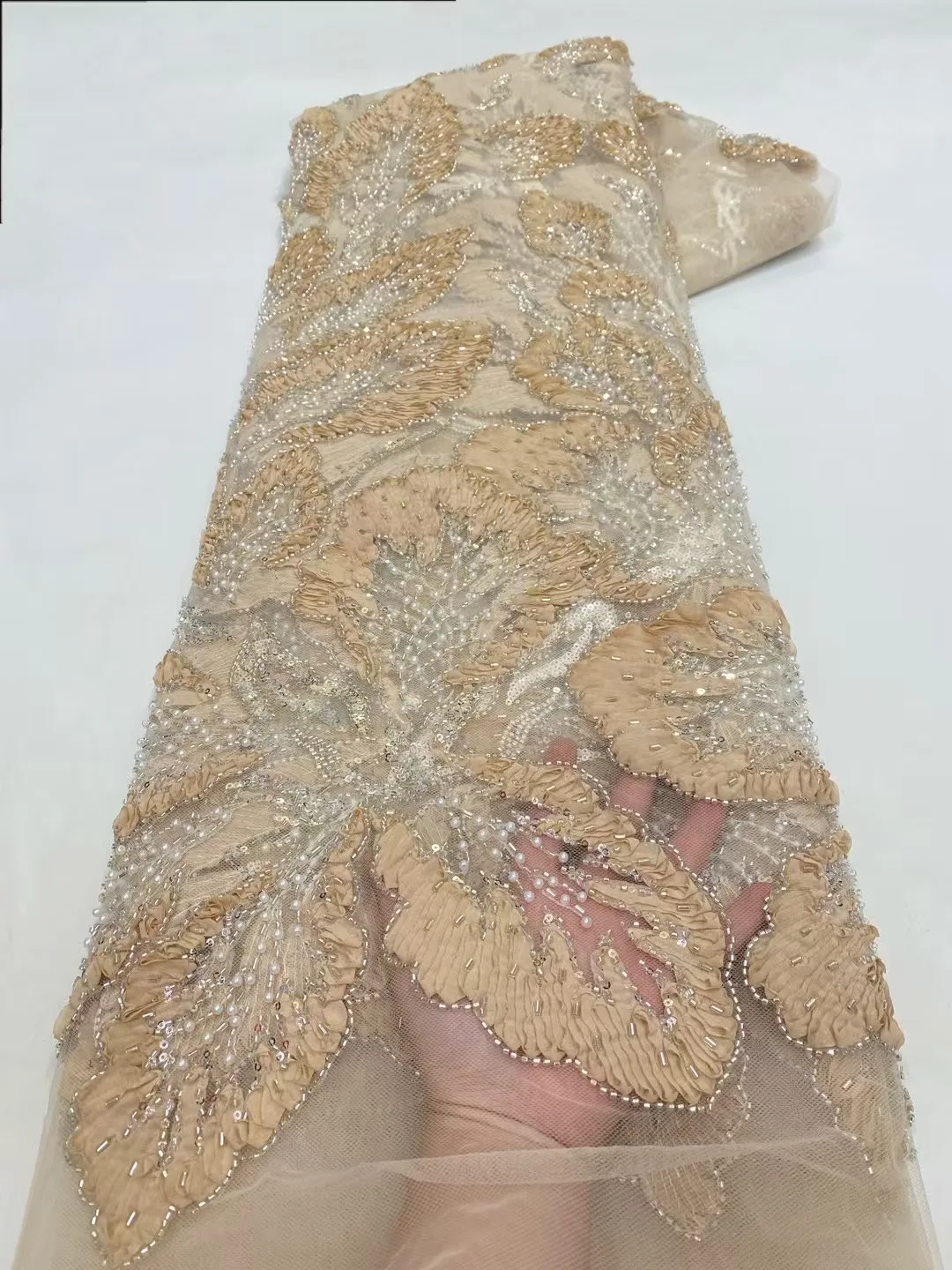 ♡Быстрый просмотр2025 синяя 3D цветочная кружевная ткань с жемчугом, высокое качество, французская вышивка, тюль, африканская ткань для шитья свадебного платья3214.12 RUBГорячее★★★★★5.0