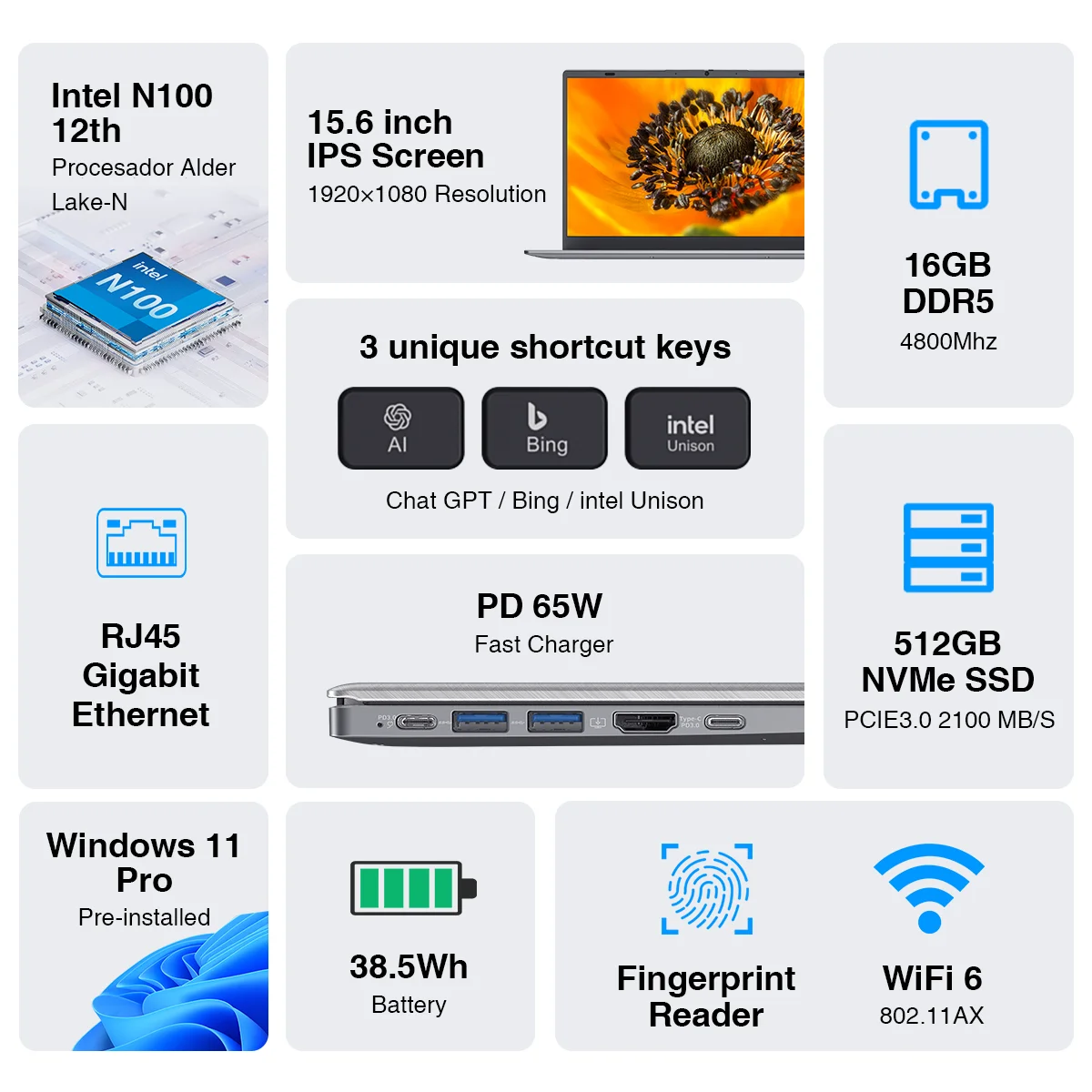 ♡Быстрый просмотр15,6-дюймовый ноутбук, 16 ГБ ОЗУ, 512 ГБ SSD, портативный компьютер с четырехъядерным процессором Celeron N5095, клавиатура с подсветкой, отпечаток пальца, Win11 Pro15902.48 RUBГорячее★★★★★★4.9