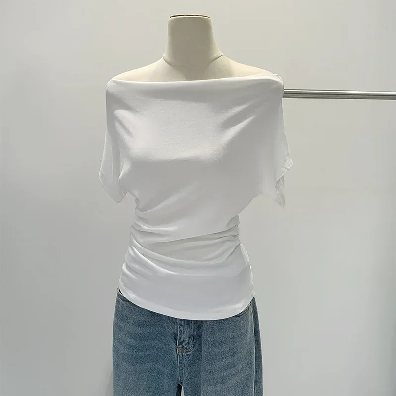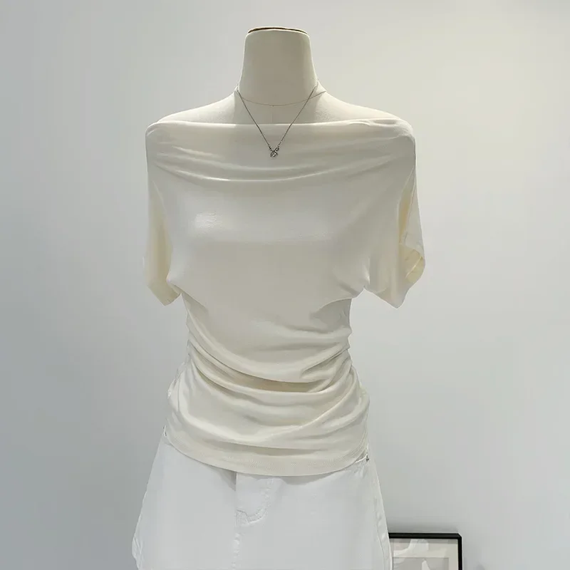 ♡Быстрый просмотрЛетняя футболка в корейском стиле ретро, цвета слоновой кости, черная, в горошек, приталенная, с короткими рукавами и открытыми плечами484.85 RUBГорячее★★★★★★4.8