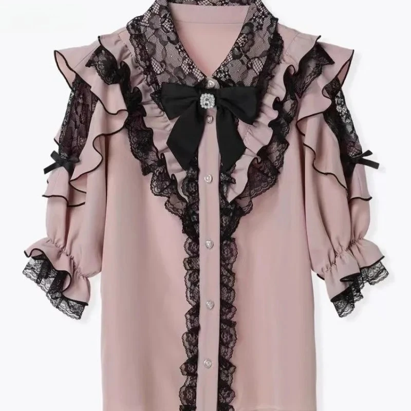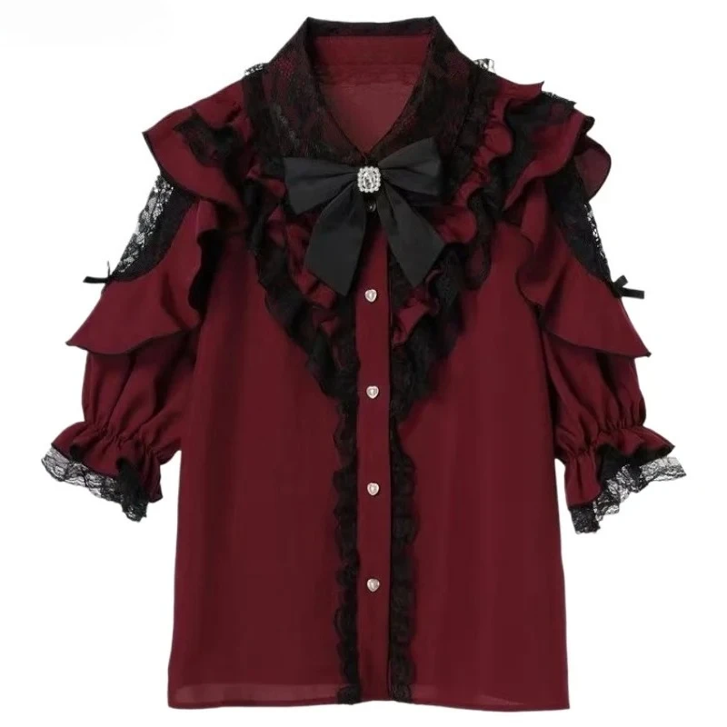 ♡Быстрый просмотрHarajuku винтажная черная нижняя рубашка женская с воротником-стойкой и оборками тонкие блузки японский викторианский с длинным рукавом Blusas De Mujer837.37 RUBГорячее★★★★★★4.8