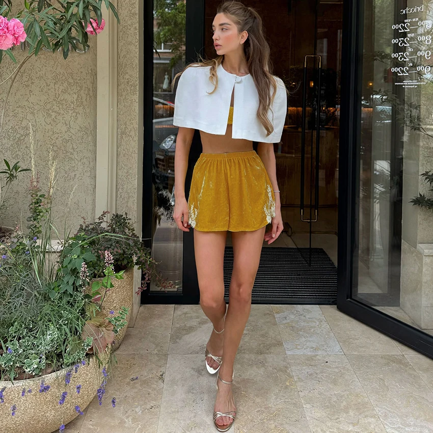♡Быстрый просмотрLinad Street Chic Белые атласные кружевные шорты для женщин Повседневные шорты с эластичной резинкой на талии Летние элегантные короткие брюки с высокой талией Lady 20251137.93 RUBГорячее★★★★★★3.9