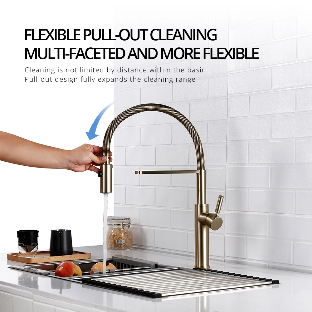 ♡Быстрый просмотрМатовый золотой кухонный кран, невидимый выдвижной спрей-смеситель с двойным отверстием, с одной ручкой, Твердый латунный кран для горячей и холодной раздельной раковины7252.13 RUBГорячее★★★★★4.4