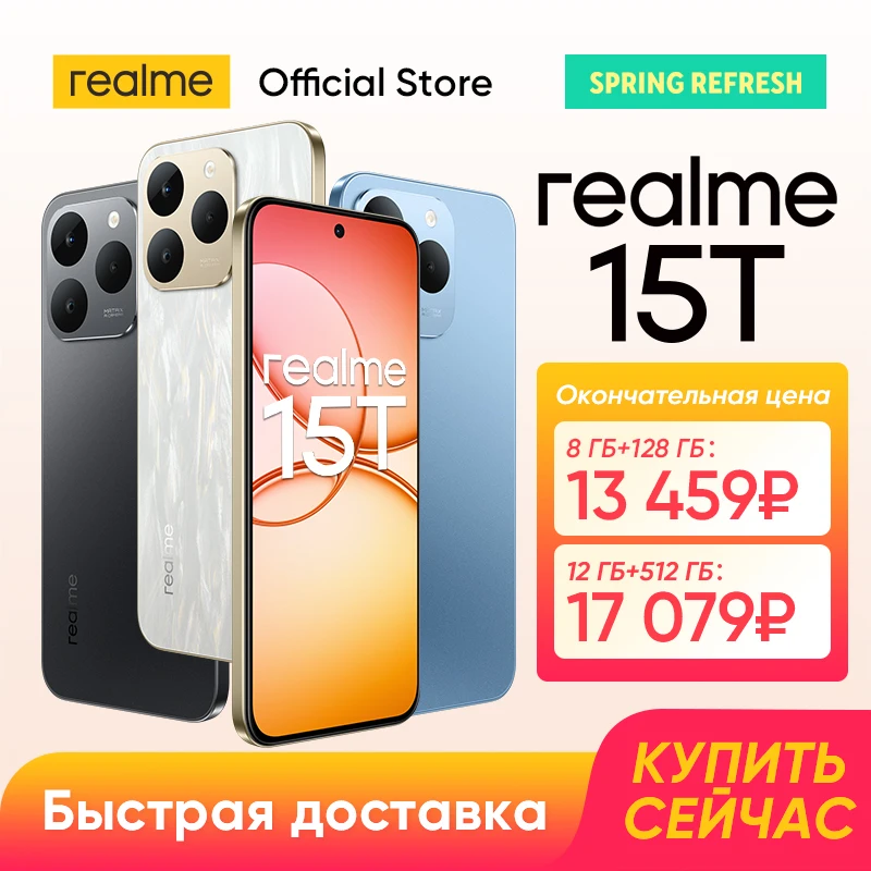 [Мировая премьера] Смартфон realme 15T 5G Аккумулятор 7000 мАч Зарядка 60 Вт Основная и фронтальная AI-камеры 50 Мп Дисплей 6.57 дюймов AMOLED 4000 нит 4R Comfort+ Чипсет Dimensity 6400 Max 5G NFC IP69 - TopDealBox