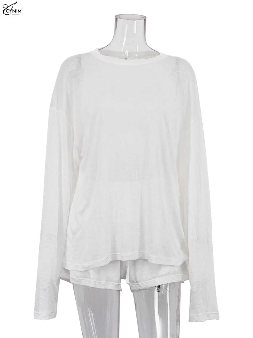 ♡Быстрый просмотрOymimi модный белый хлопковый женский комплект из двух предметов, элегантные свободные рубашки на шнуровке с пышными рукавами и шорты с высокой талией, женские комплекты2714.68 RUBГорячее★★★★★★4.9