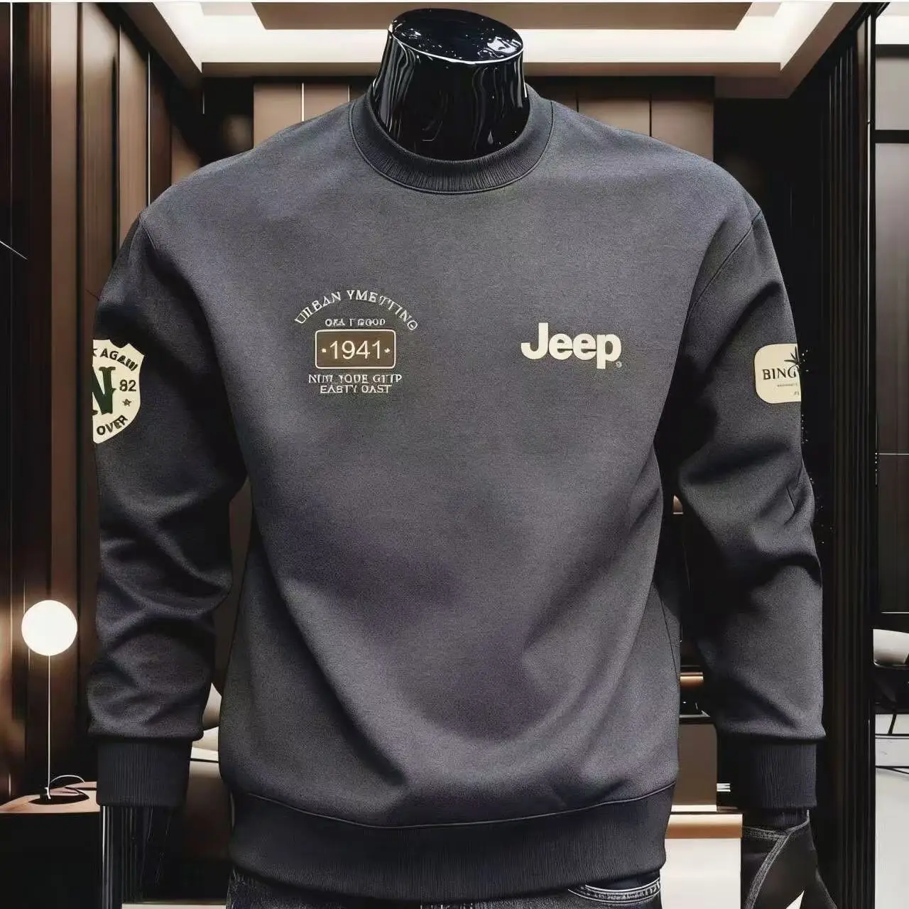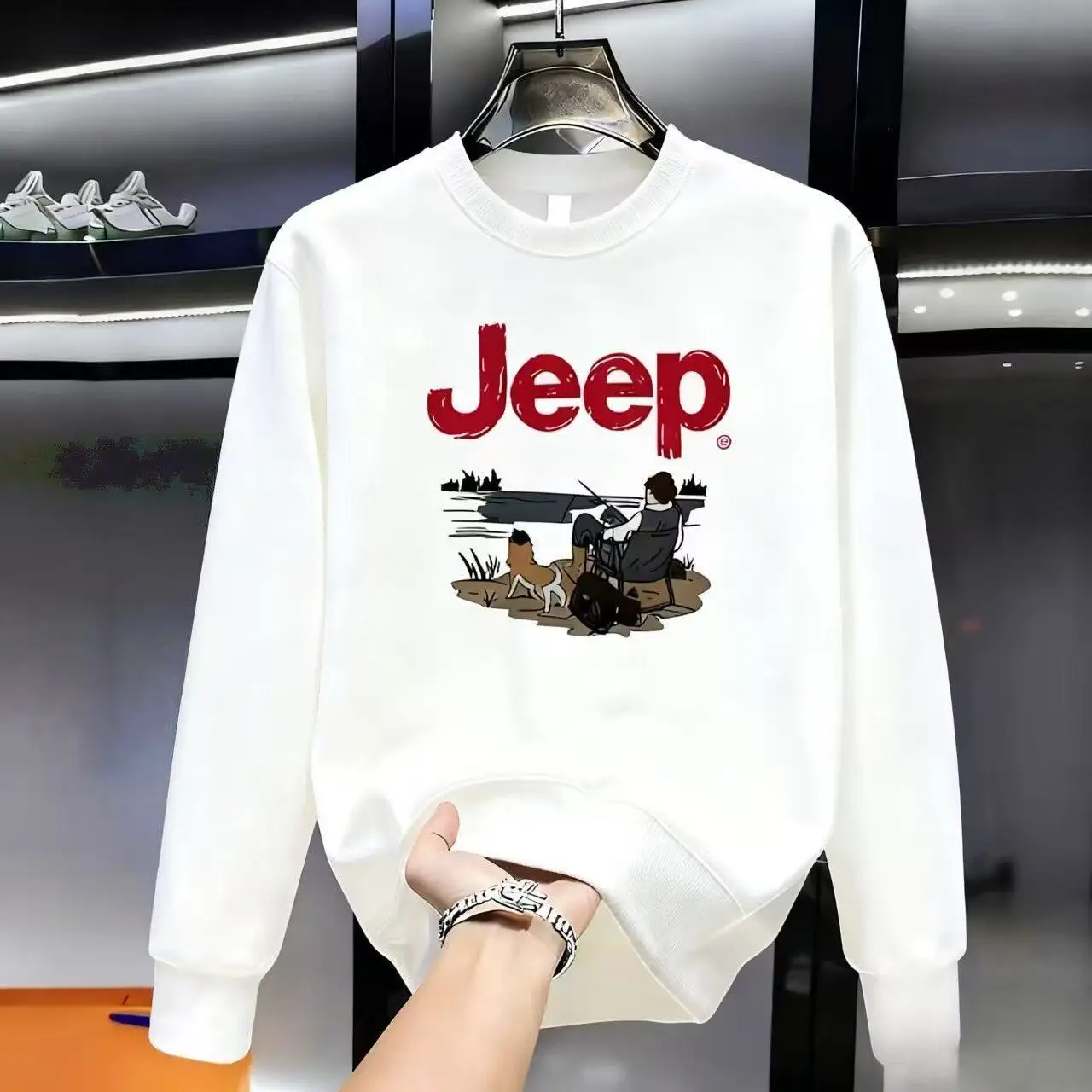 Мужской повседневный свитшот из чистого хлопка с принтом, универсальный, с длинным рукавом и круглым вырезом, высокого качества, для весны и осени, 2026 Jeep - TopDealBox