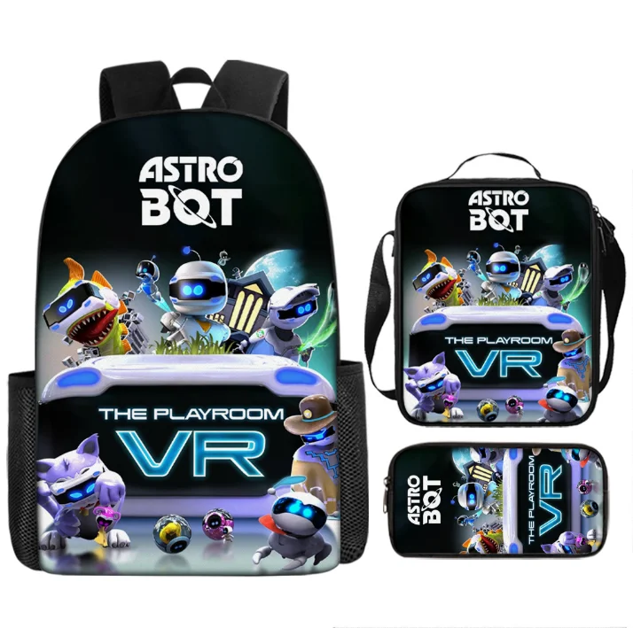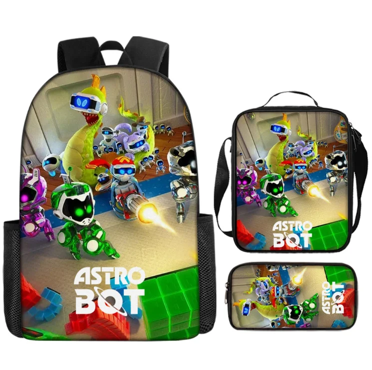Набор из 3 предметов: 16-дюймовый рюкзак Astro Bot с милым рисунком, рюкзак для начальной школы, рюкзак с 3D принтом + сумка для обеда - TopDealBox