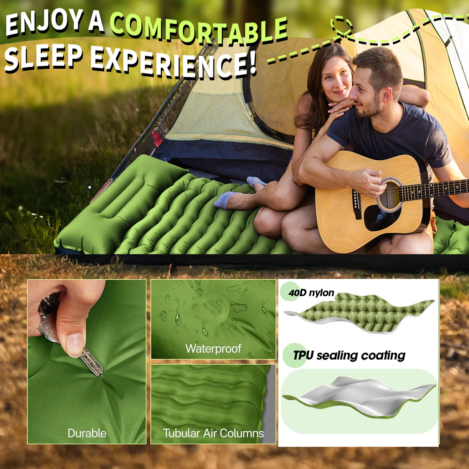 Надувной матрас для кемпинга на открытом воздухе, спальный коврик с подушками, сверхлегкий надувной коврик со встроенным насосом для пешего туризма - TopDealBox