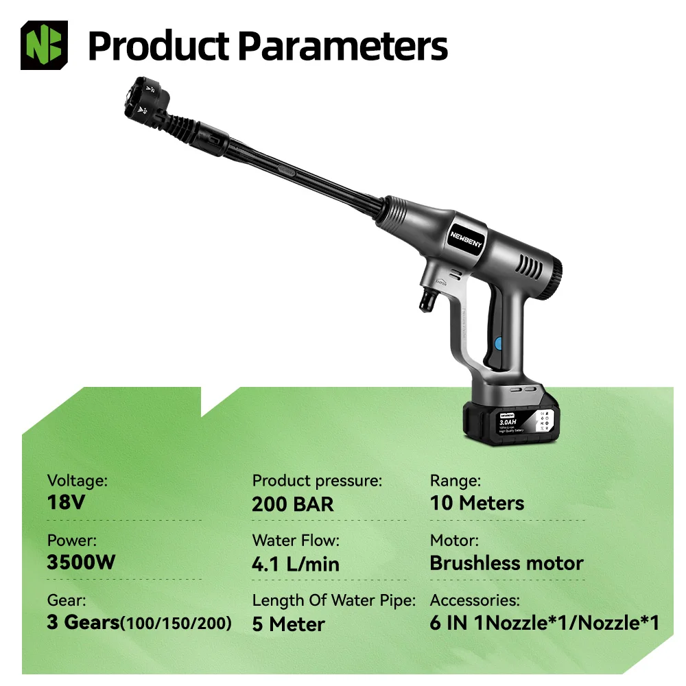 NEWBENY 200 бар бесщеточная электрическая мойка высокого давления 3Gear аккумуляторная машина для чистки сада ирригационный инструмент для Makita батарейный штифт - TopDealBox