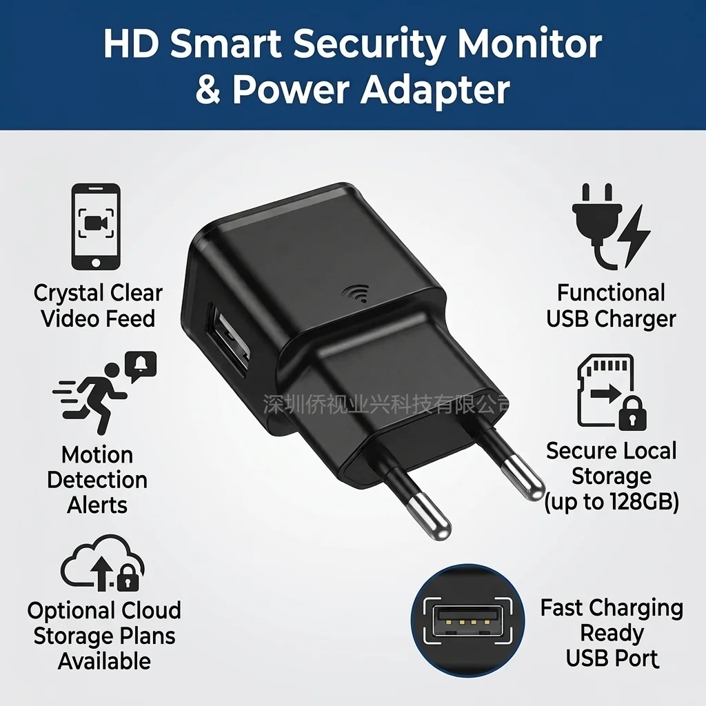 Новый Wi-Fi-адаптер-зарядное устройство для умного домашнего видеонаблюдения 1080P, беспроводное видеонаблюдение с оповещением о движении, поддержка 128 ГБ - TopDealBox